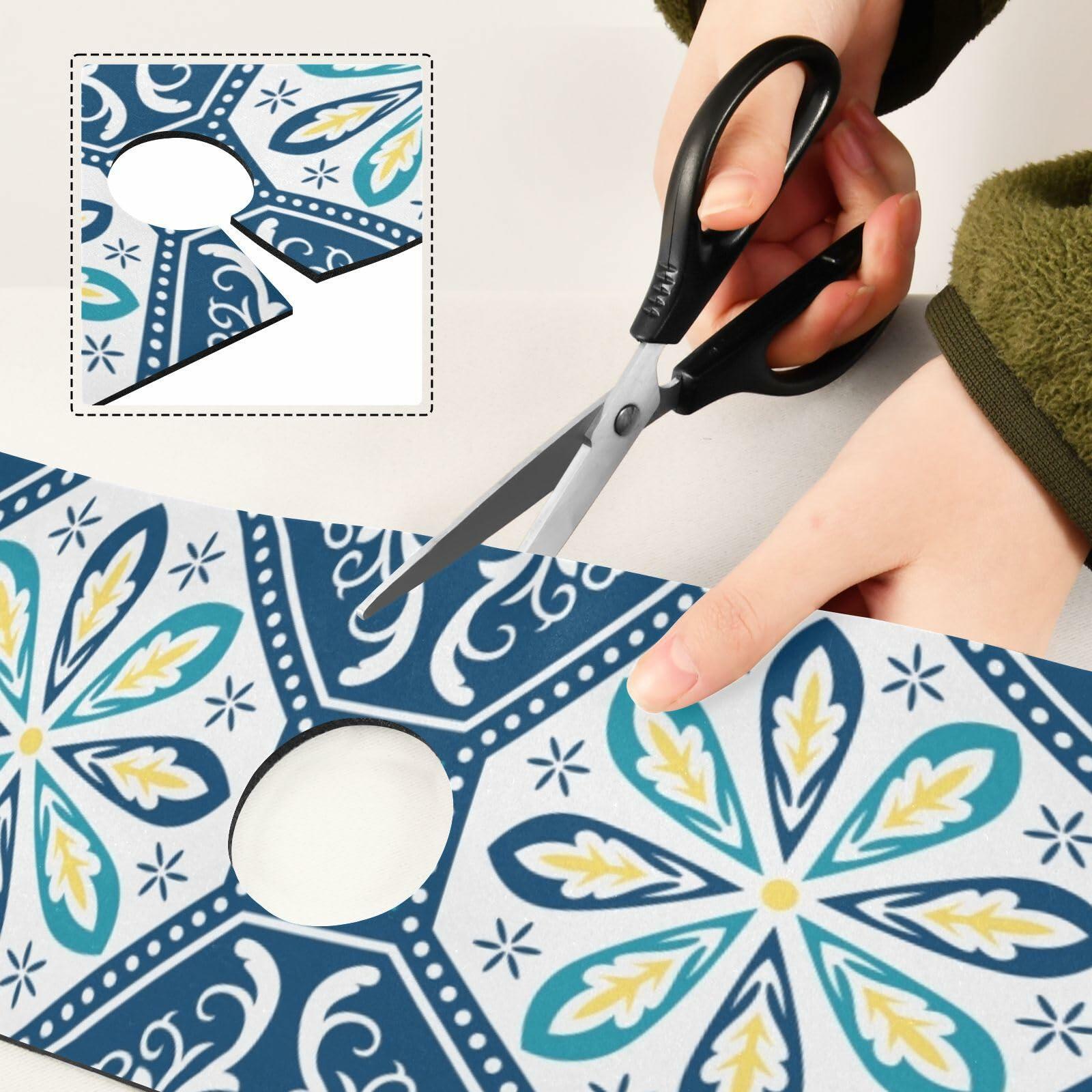 The surface of our sink splash guard is made of absorbent polyester material, the middle part is made of diatomite material with fast water absorption, the non-slip rubber backing can make it stay in place all the time. Our sink splash guard behind faucet has 2 sizes for choice: 14.7 x 5.4 x 0.15 inch and 30 x 5.4 x 0.15 inch, the diameter of the middle hole is 2.3 inch, so please measure the size of your faucet before purchasing. Our faucet splash guard for kitchen sink can quickly absorb water splash while washing vegetable, fruit or your hands to prevent the countertop from water stain, reducing the hassle of cleaning up. Our kitchen sink splash guard behind faucet is cuttable, if our splash guard for sink is not suitable for the size of your faucet, you can cut it to the suitable size to match your faucet or sink. Cutting will not damage the edge of our faucet drying mat. Our kitchen sink faucet splash guard is foldable, so it is easy for you to move or store. Our kitchen sink faucet mat splash guard is easy to clean: hand wash and machine wash is workable, and air dry it in shaded areas. Please use mild and neutral detergent for washing, do not use bleach to clean it. Our kitchen faucet mat sink splash guard is suitable for kitchen countertop, sink, bathroom, RV faucet use. Also, it can be used as a storage mat to hold your small items, such as dish sponge, dish towel, toothbrush, toothpaste, water cup, hand sanitizer and dish washing liquid to keep them neat and organized.