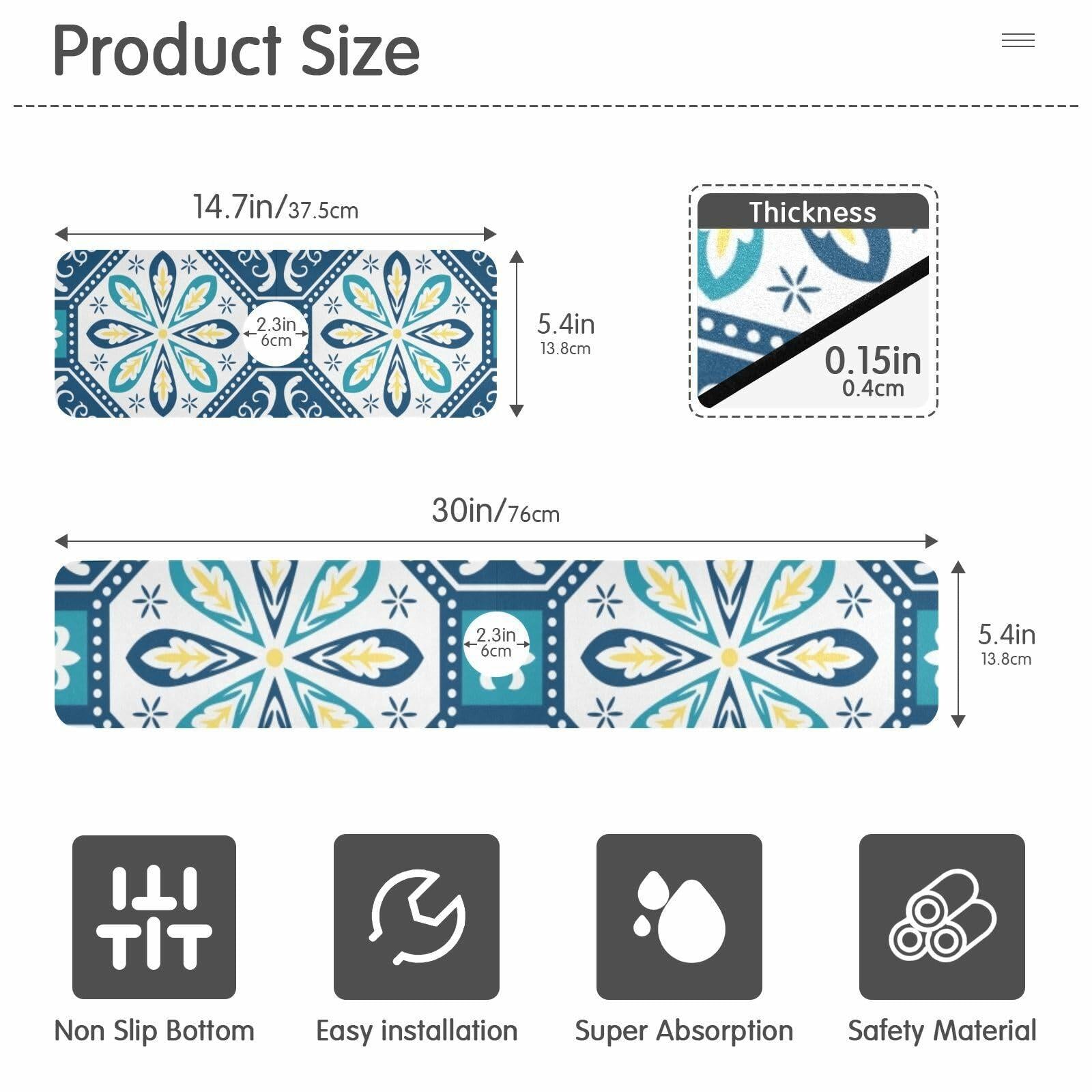 - 2 Sizes for Choice: S: 14.7 x 5.4 x 0.15 inch; M: 30 x 5.4 x 0.15 inch; the diameter of the middle hole is 2.3 inch. Please measure the size of your faucet before purchasing