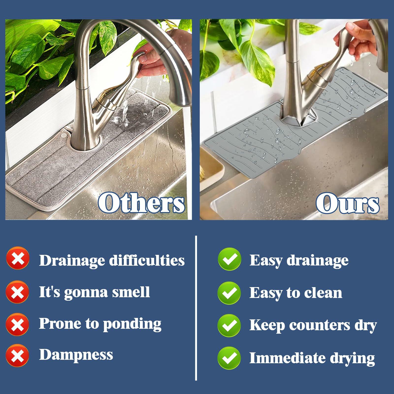 - Easy to Clean Water Faucet Mat: Silicone draining mat is stain and, keeping the back of the faucet dry and clean at all times, thus reducing your cleaning time。