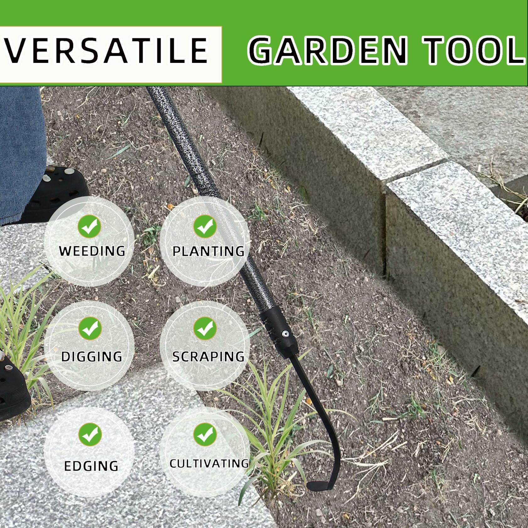 - Versatile Garden Tool: weed remover tool made of quality alloy steel, designed with an adjustable handle and upgraded blade has a curved head allows for efficient soil penetration and root removal. The weeder tool is narrow enough to get into small and tighter spaces, it is easy to aerate, prepare and maintain soil areas for planting, reseeding grass, or remove weeds. Weed puller tool perfect for weeding, digging, edging, planting