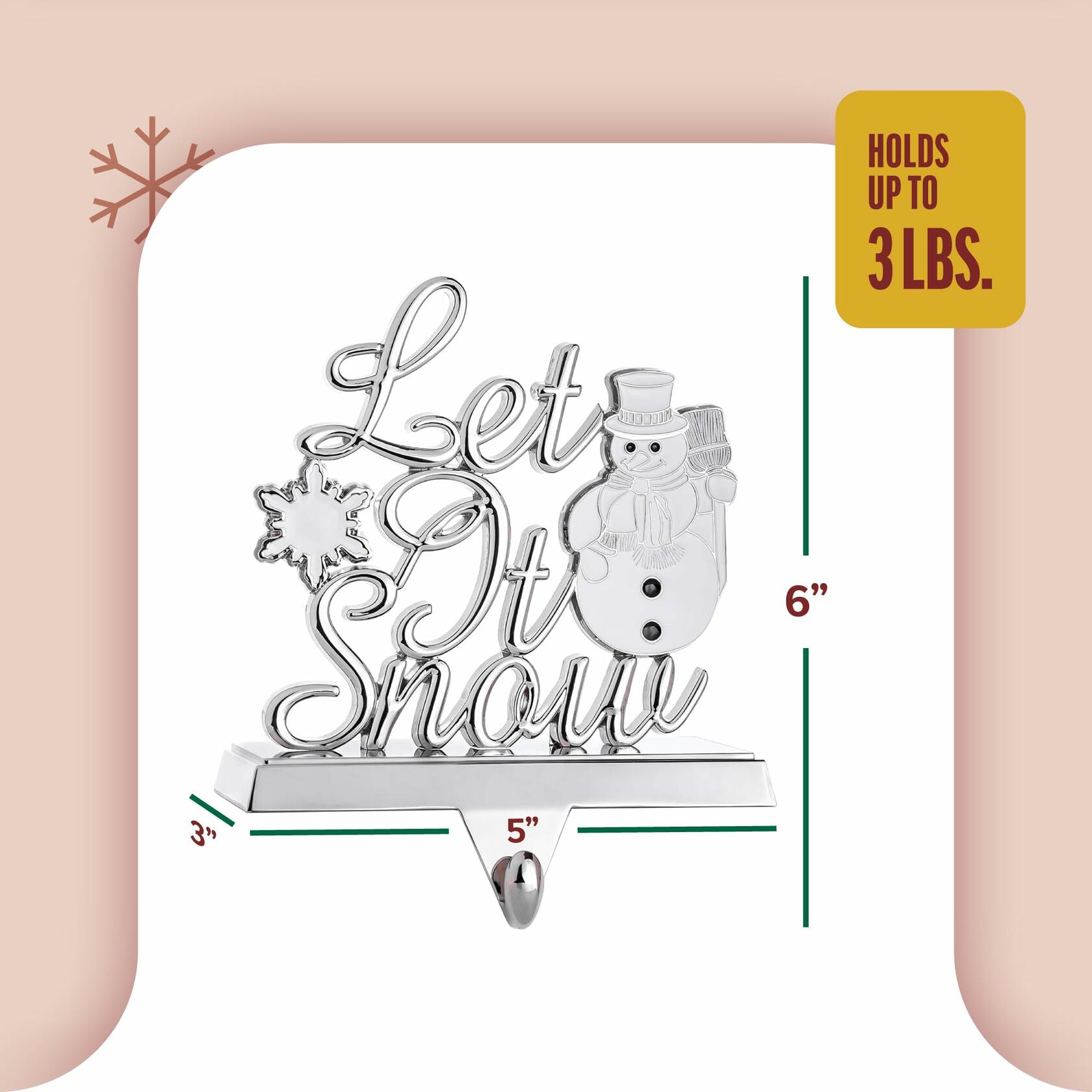 - UNIVERSAL THEME: This mantle stocking hook has a wintry snowflake and snowman with the cutout "Let It Snow" holiday bows and glass balls. The universal theme makes this suitable for little kids, big kids, and families of different faiths.