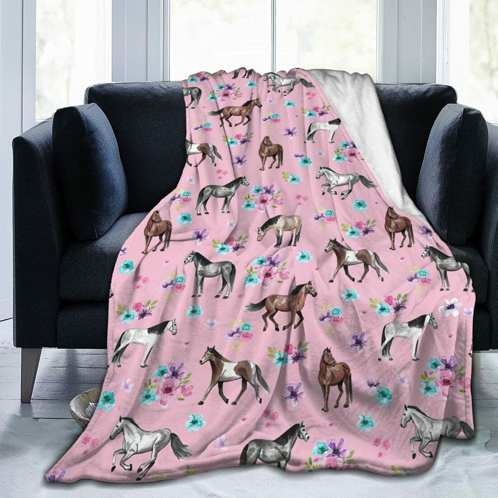 Knsoiv 3D Flannel Plush Throw Blanket Pink Horses Flowers Floral 50x40