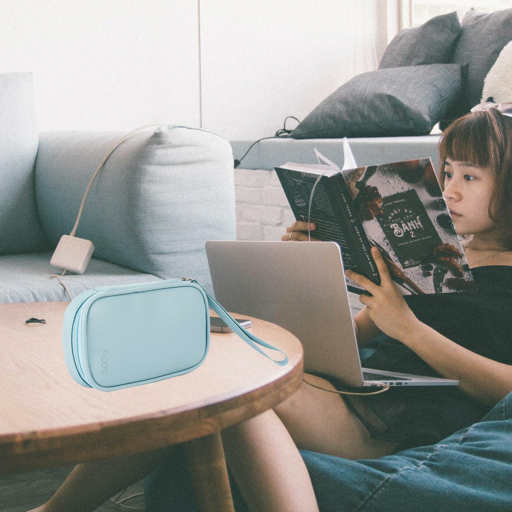 Koikyu PU Leather Tampon Organizer Bag with Zipper Handle Light Blue Small