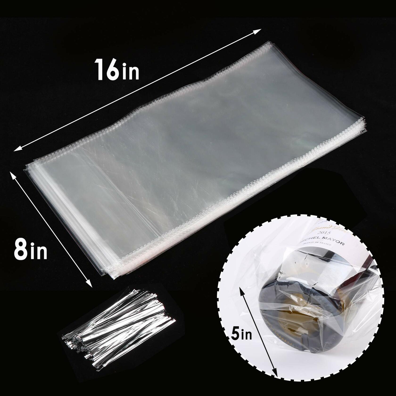 Suitable size:the wine bottle bag is 8 inch in width and 16 inch in length; Made of OPP, good quality and durable; With 200 pieces twist ties,easy to use