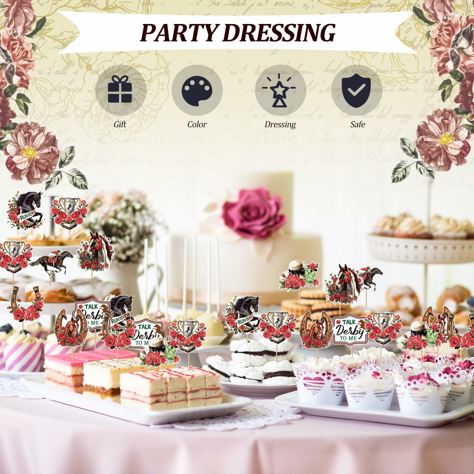 - Versatile: this cupcake derby day party supplies offers widely application; Ideal for horse racing themed parties, Derby gatherings, or other equestrian styled events; This set will add an unforgettable touch to your dessert presentation
