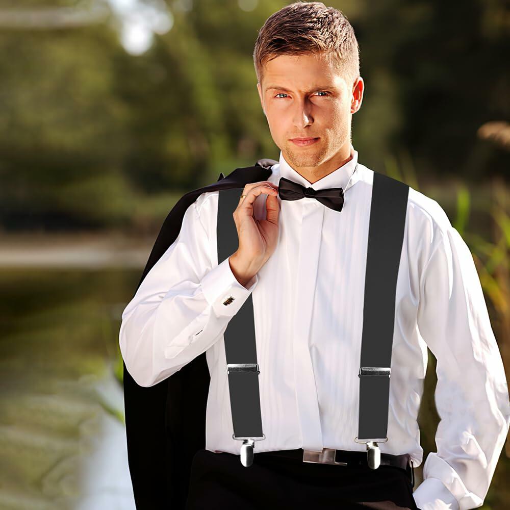 - 【X-Shaped Design】:This X-Shaped suspenders are made of harmless material and available in a variety of colors to meet your daily dress code and matching needs, perfect to wear with shorts, jeans, suit pants or pants. Our high quality snaps hold your garment securely in place and won't unintentionally come undone, so you can enjoy a snug fit and wear it with confidence all day long. The suspenders are made of elastic material and fit well at your desired length.