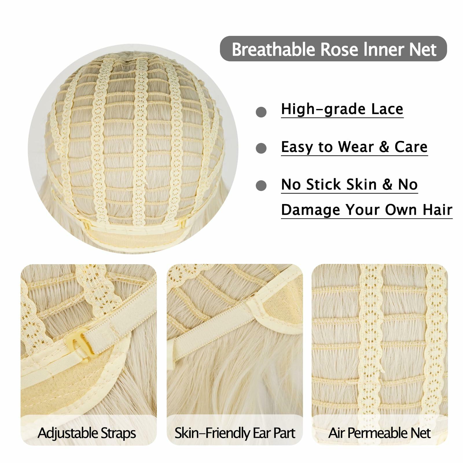 - 【Adjustable Size - 19.6'' - 23.6''】The inner rose mesh cap comes with 2 adjustable straps, you can adjust its size to fit your head and hold the wig firmly in place. In addition, the inner mesh cap is made of high-grade lace, which is breathable and elastic, easy to wear and comfortable.