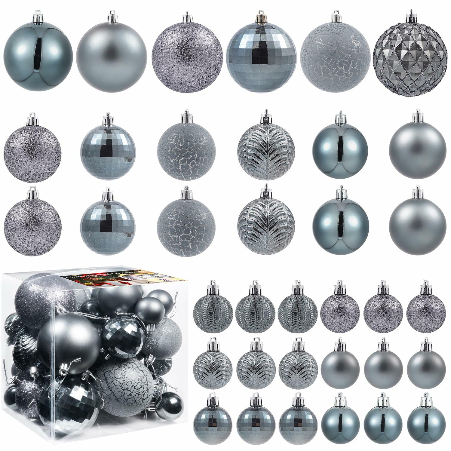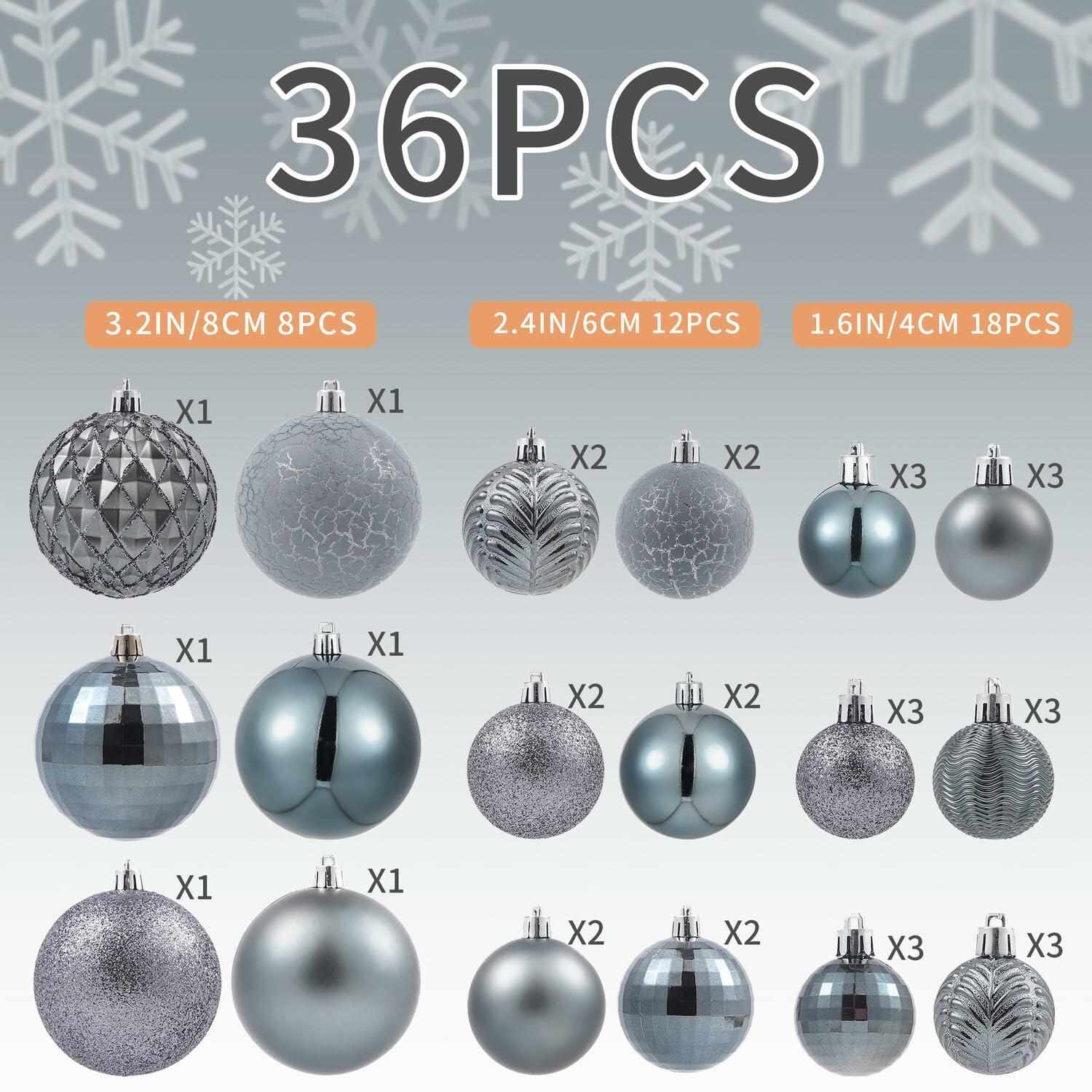 LANGXUN 36pcs Grey Christmas Tree Decorations Balls Shatterproof Ornaments