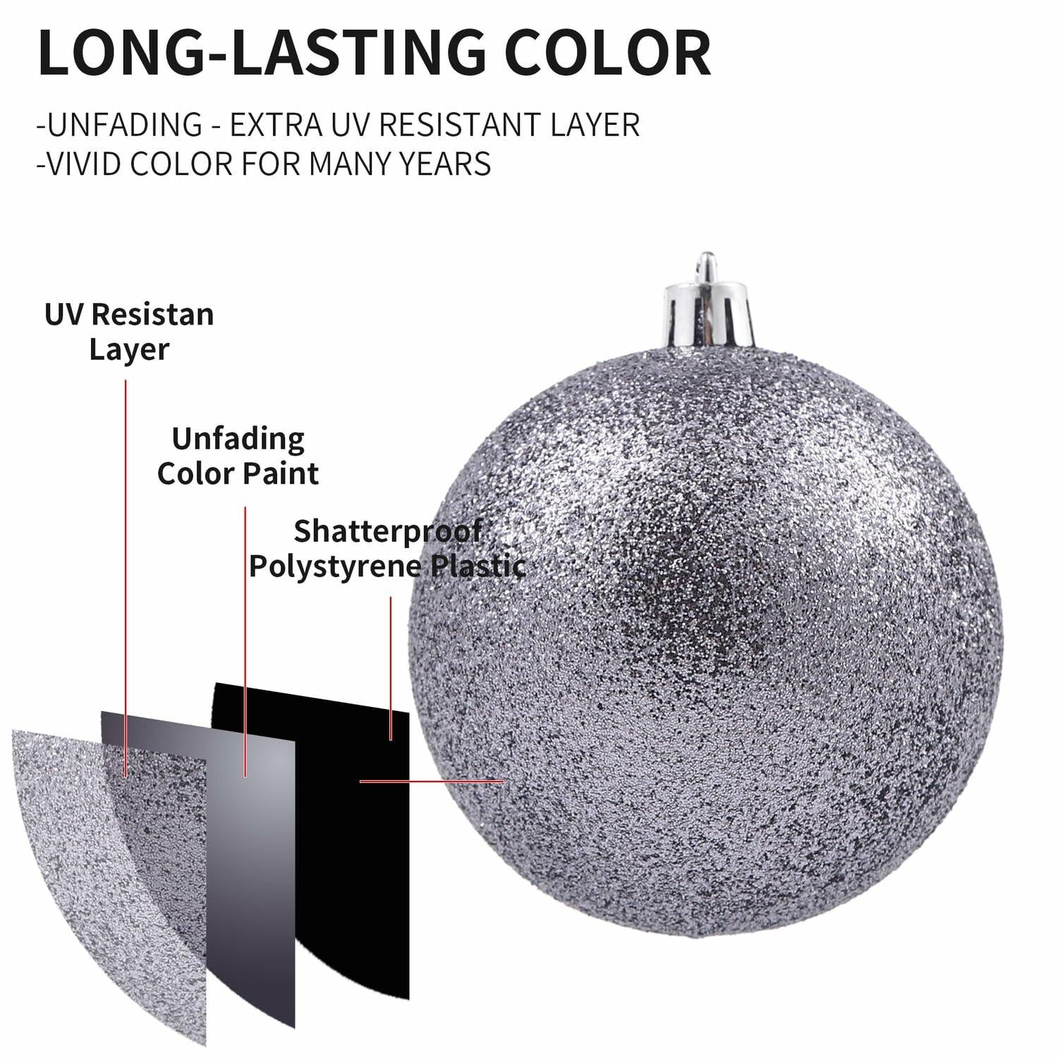 - Premium Quality - Crafted from thick and durable material, all our Christmas balls are made to last. Each ornament includes a high-quality plastic hanger to ensure they stay vibrant and shiny throughout the holiday season. Uv protection, indoor and outdoor use.