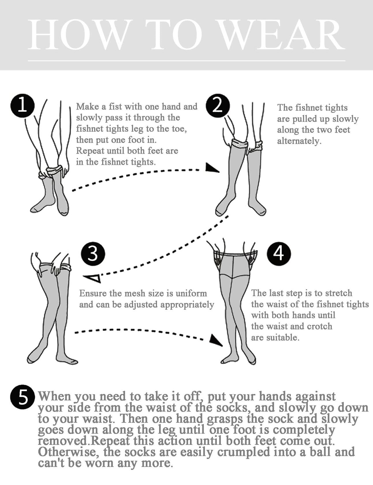 - [FISHNET PANTYHOSE MATERIAL]: 100% brand new and high quality. Made of very elastic skin friendly material, tight but no squeeze. Wide elastic at waist, fit to body and hold tight. Closed foot, with full foot coverage for easy wear with shoes and heels
