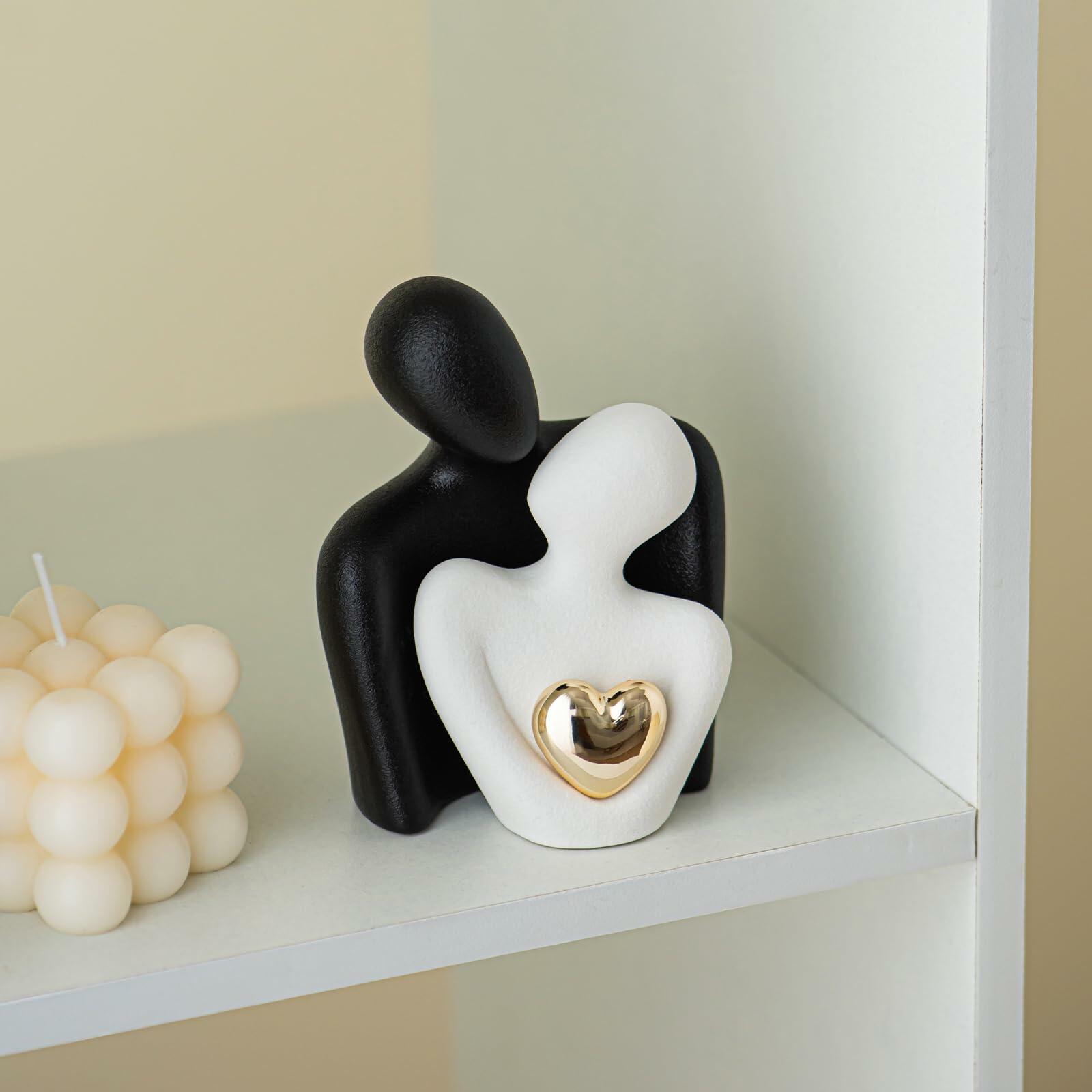 - Intimate Aesthetic Appeal: Celebrate togetherness with the 'hugging couple statue', perfect as an porcelain anniversary gift for couples. Its elegant ceramic and the central gold heart detail embody a timeless bedroom dresser decor for couples, inviting romance into your space.