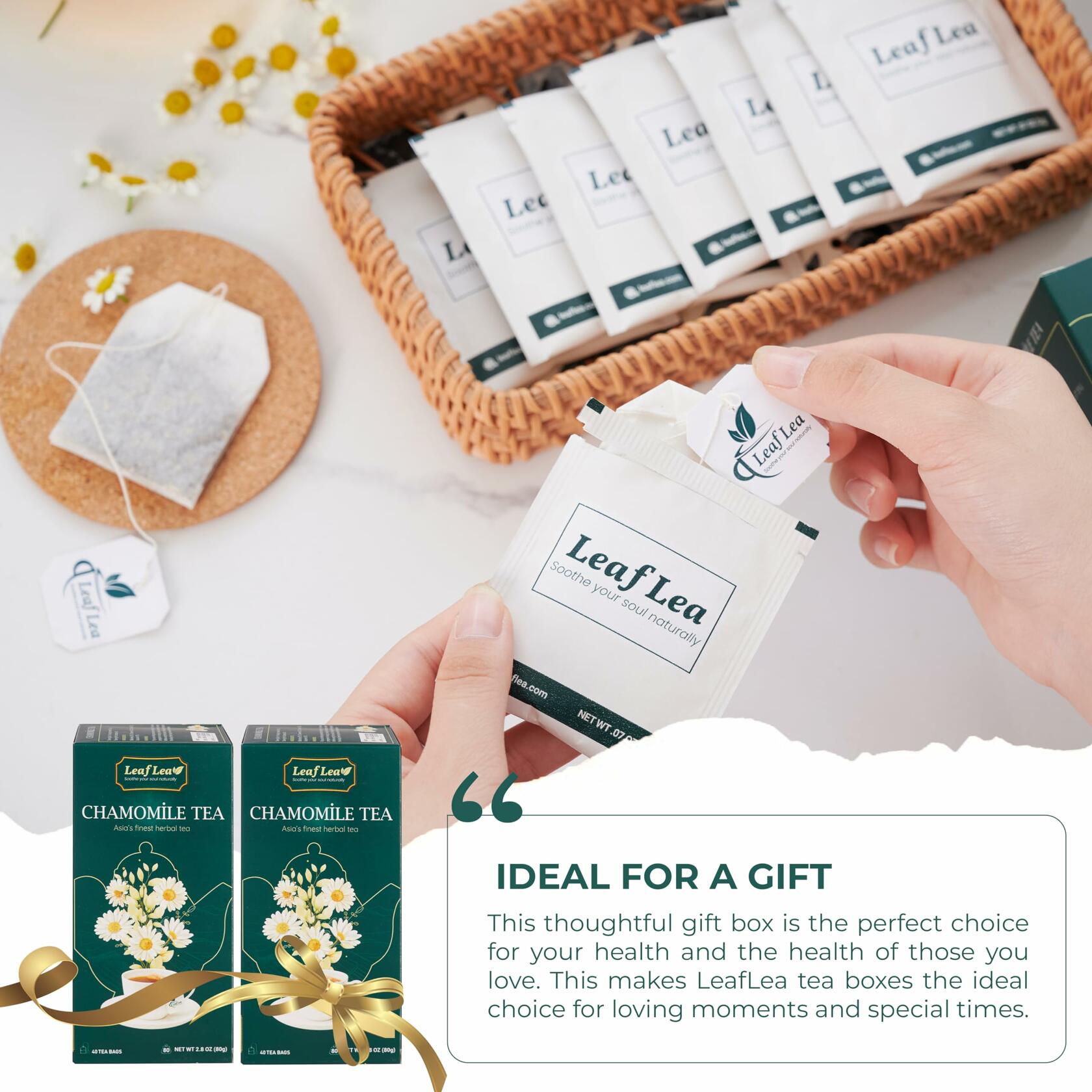 - ✅ IDEAL WELLNESS GIFT BOX: LeafLea Chamomile Black Tea bags offer the perfect gift of relaxation and health, embodying care and love. This thoughtful, versatile gift box is suitable for anyone and ideal for special occasions, symbolizing a heartfelt concern for well-being.
