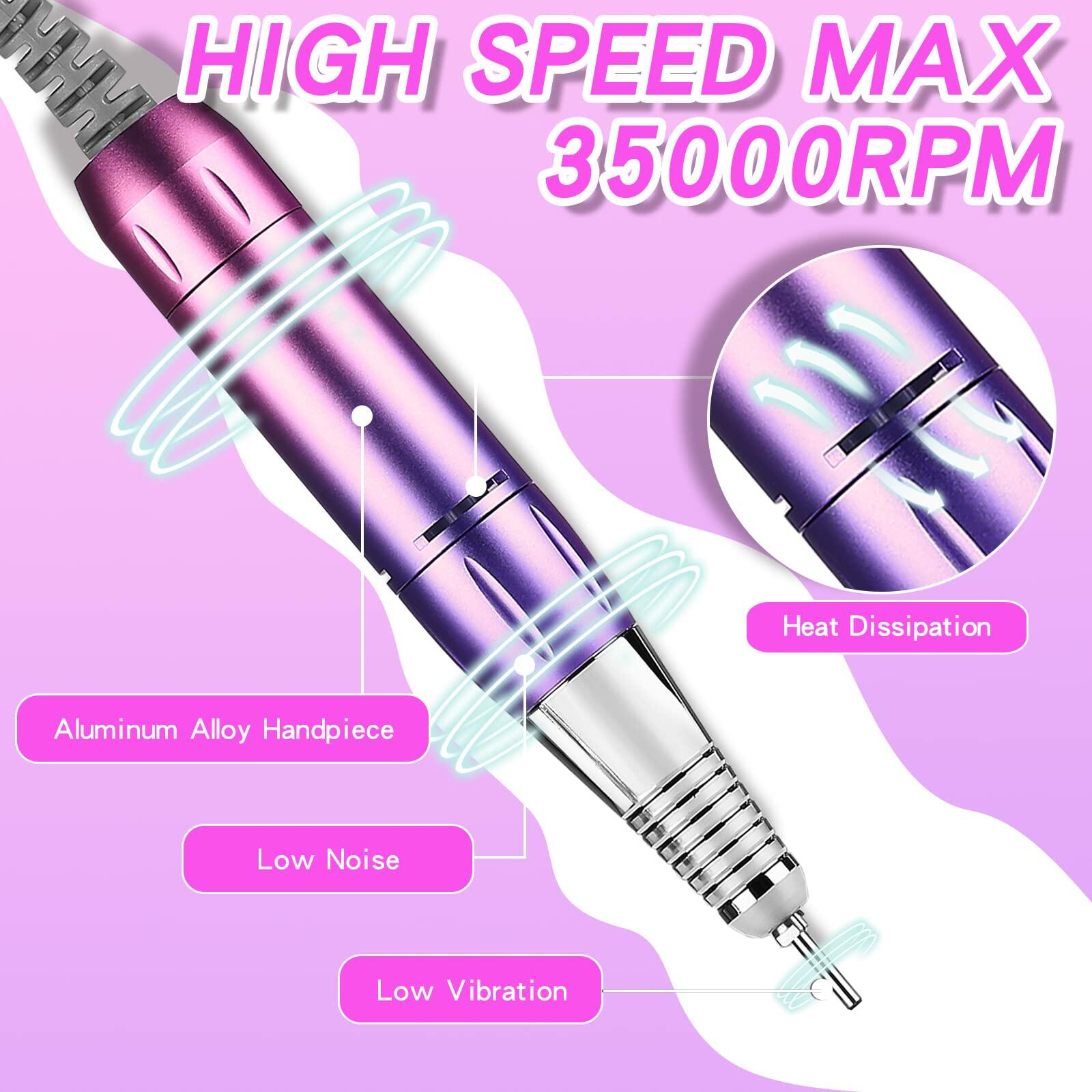 - [ High-Speed Bearings ] -- Our superior nail drill is equipped with a powerful bearing, which works smoothly at a high and adjustable speed (0-35000 RPM) by rotating the speed control knob with ease, It’s a great Efile for both professional technicians in salon and newbies who start their journey to nail beauty at home.