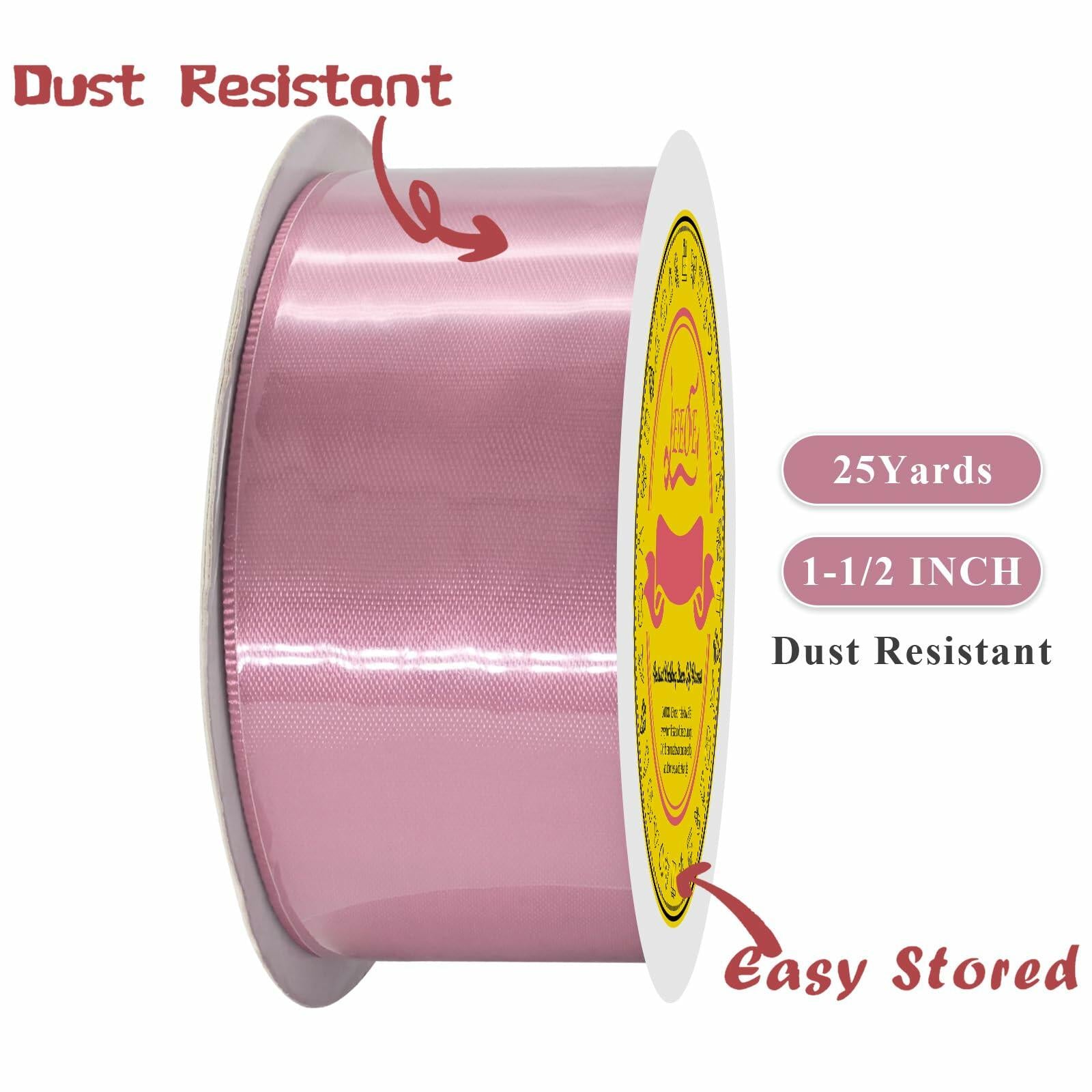 - 【Double face Rose Mauve satin ribbon】Rose Mauve satin ribbon Silky texture with double sided ribbon.Width: 1-1/2 inch Length: 25 yards each roll with plastic spool and dust-proof paper, can be store easily.