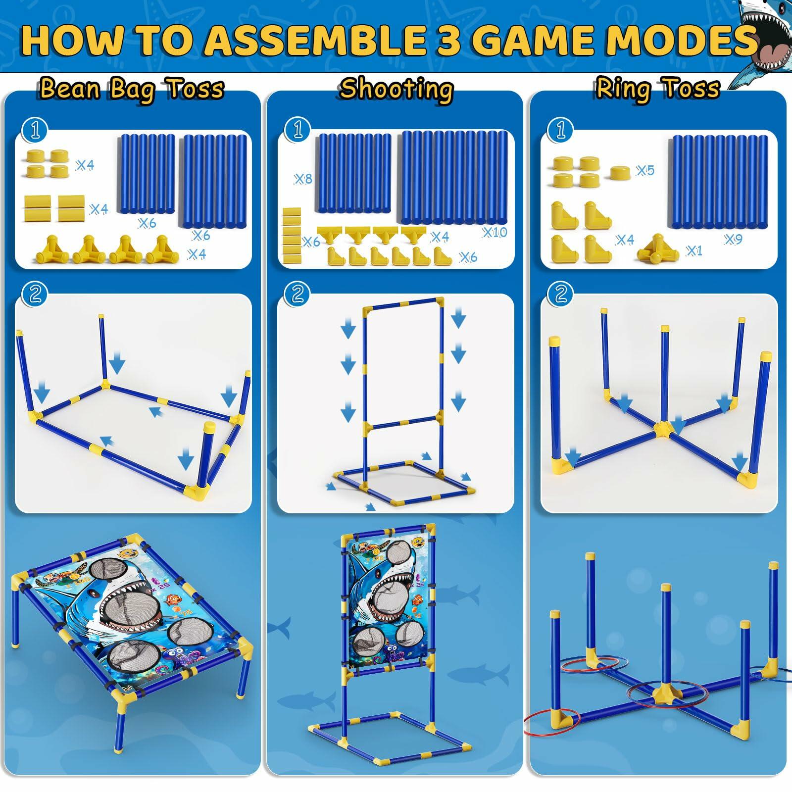 - East to Set Up: With detailed instruction and simple construction, the outside toys for kids ages 4-8 can be easy to set up for three different outdoor games, and kids can experience the disassembled and assembled fun with their families and friends. Features multiple outdoor activities, this bean bag toss game set is suitable for all ages including toddler and adult