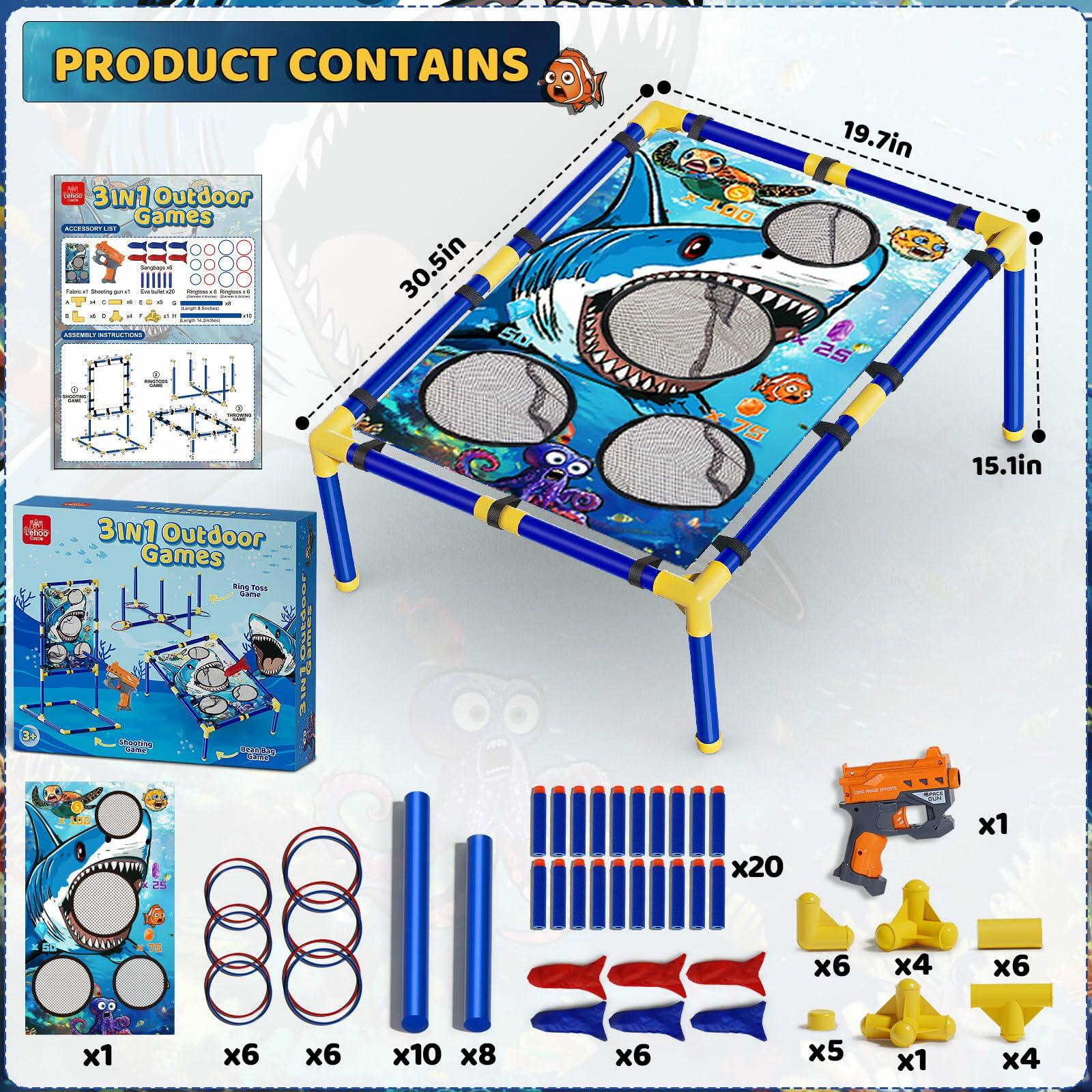 Lehoo Castle 3 in 1 Bean Bag Toss Game & Shooting Game & Ring Toss Game, Rich Outdoor Toys for Kids Ages 4-8, Backyard Games & Outdoor Games, Outside Activities for Family Party, Gift for Boys