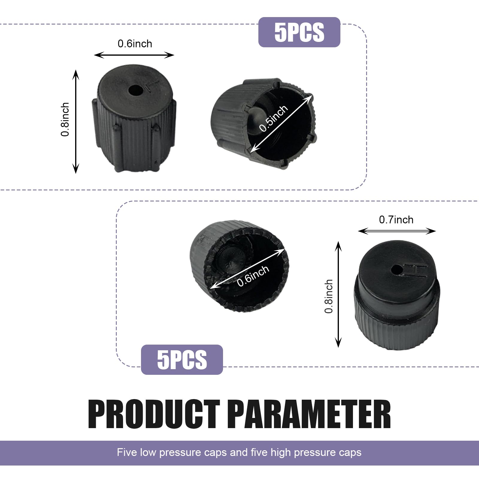 - Packing Details: You will receive ten car air conditioning service AC system port covers, including five low pressure covers and five high pressure covers. It is suitable for the air conditioning systems of most cars on the market. You can buy with confidence.