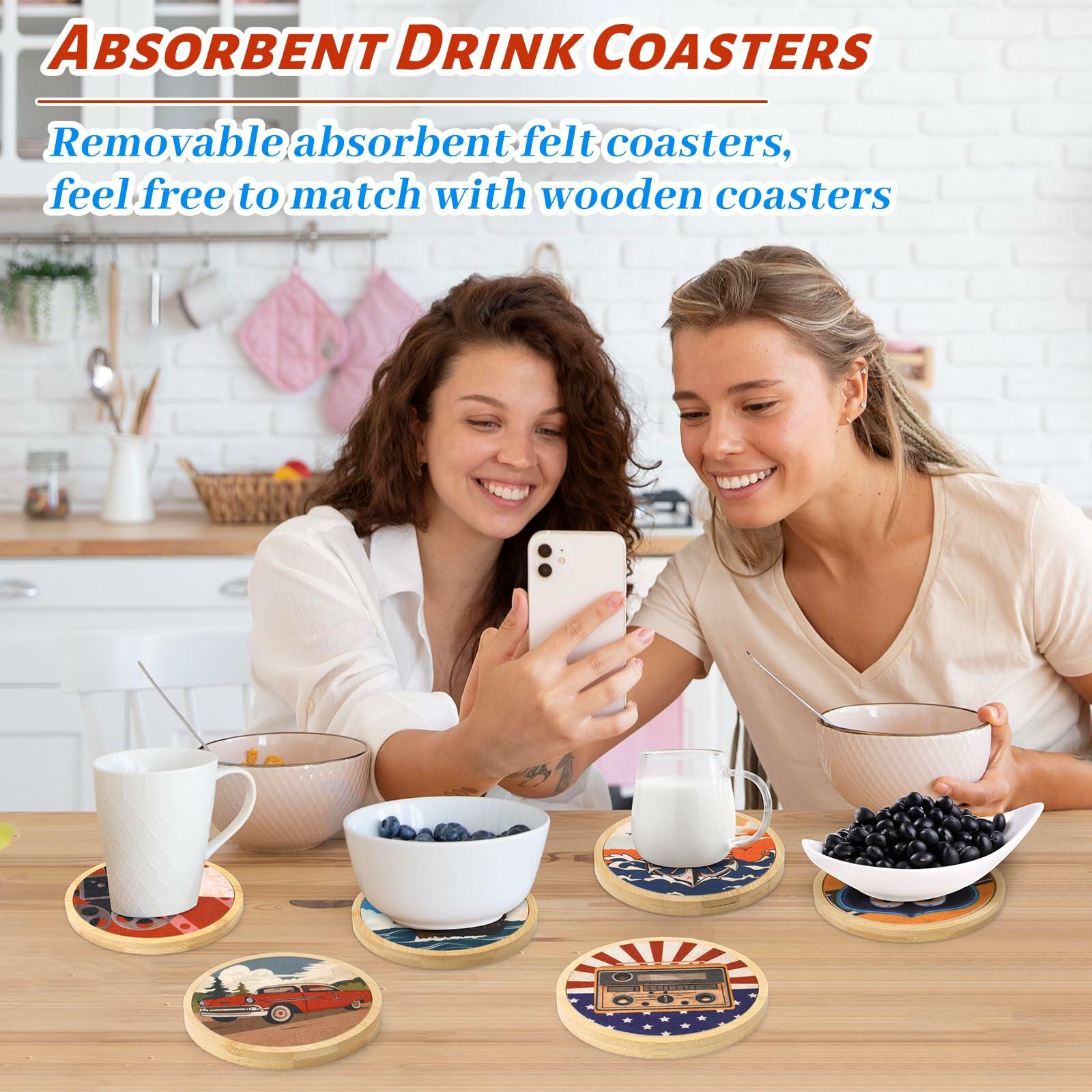 - Perfect Gifts Ideas : These cute vintage wooden coasters are perfect for family, friends, and loved ones, perfect for housewarming, wedding, or holiday gifts. The practical and stylish design of the coaster set appeals to home decor enthusiasts and makes an amazingly practical gifts