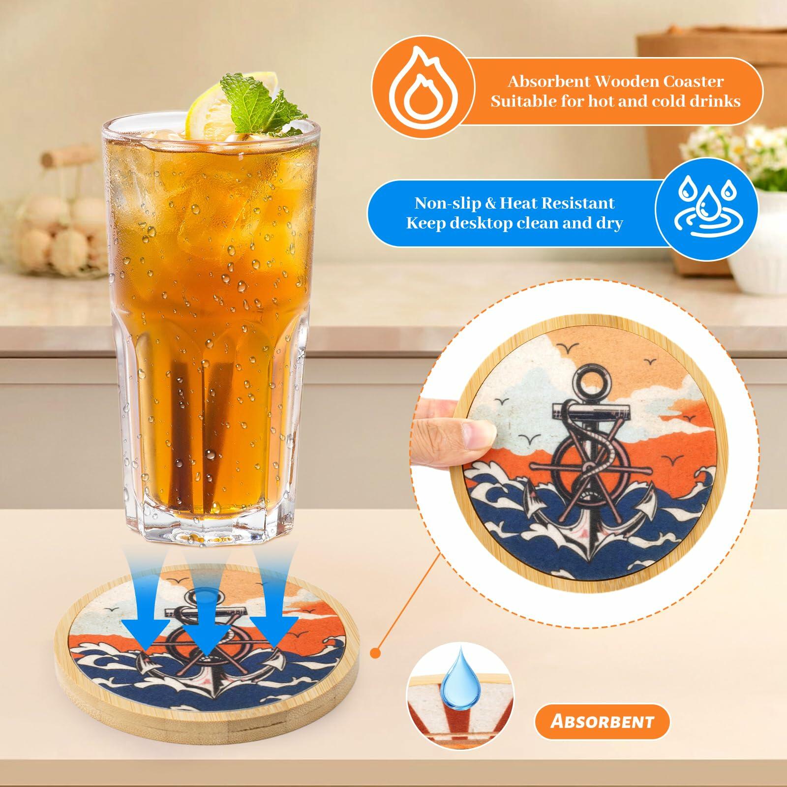 - Absorbent Heat Resistant Wooden Coaster:The felt pads included with the coasters are highly absorbent, quickly trapping condensation and preventing water rings, as well as heat-resistant and non-slip, protecting the tabletop from burns and scratches. The drink coasters are conveniently designed so that the felt pads in the coasters can be easily removed for quick cleaning or replacement to ensure long-lasting use