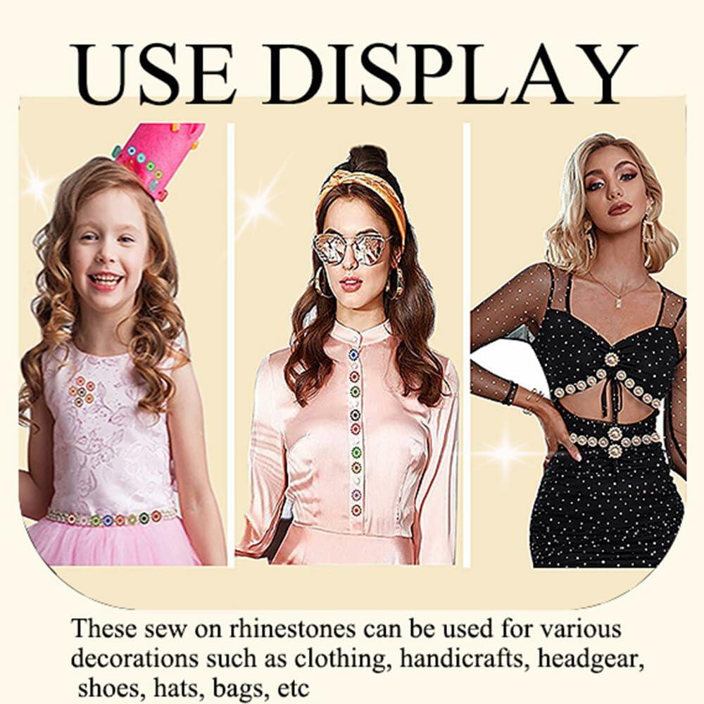 These are Sew on rhinestone ,It is composed of crystals rhinestones and metal base . The labeled size of this product is 12mm. This is the mold size, but their actual size is 11.8mm, easy to apply: Fabrics - It can be fixed with needle and thread or glue where we need to decorate.Use on:Belts, clothes, shoes, wood projects, backpacks, glasses, Jeans, cellphone cases, tablets, hairpin,wedding dresses...you name it...It can be personalized, create your own design.Warm note: please apply carefully and safely,and item is not suitable for under Children under 3 years old.