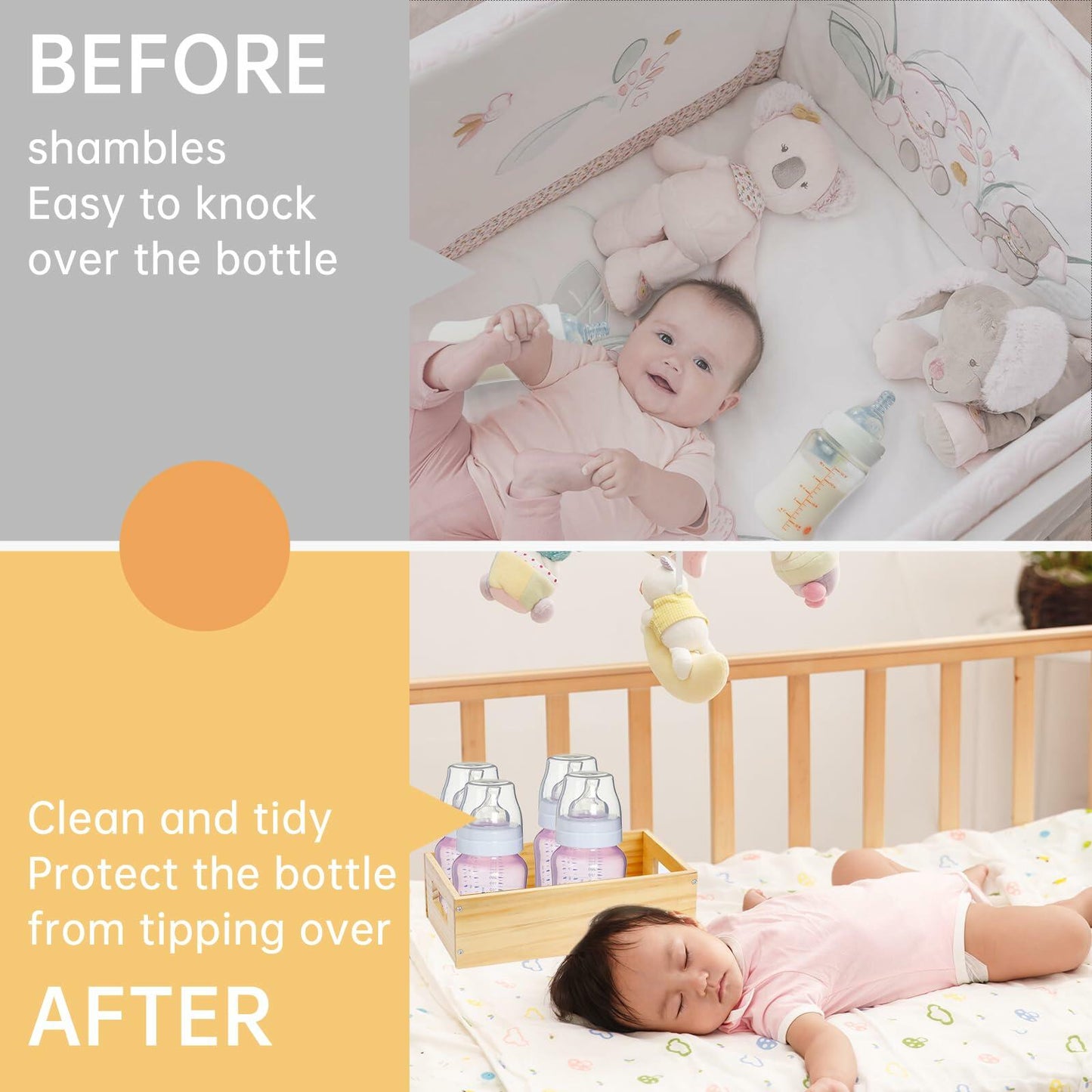 - High quality material: This baby bottle organizer is made of high-quality woodiness, This storage center securely places baby bottles, straw cups, and jars in a convenient location, reducing clutter and keeping the space tidy