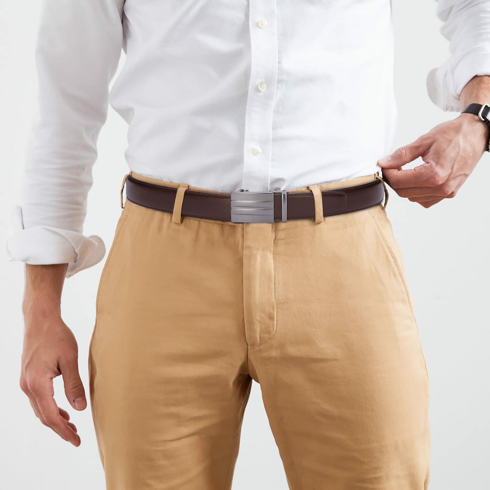 - Durability Meets Style: Crafted from premium leather, this ratchet belt men cherish is built to last. The scratch-resistant buckle of our mens belts leather ratchet ensures your look stays sharp, whether it's a day at the office or a night out.