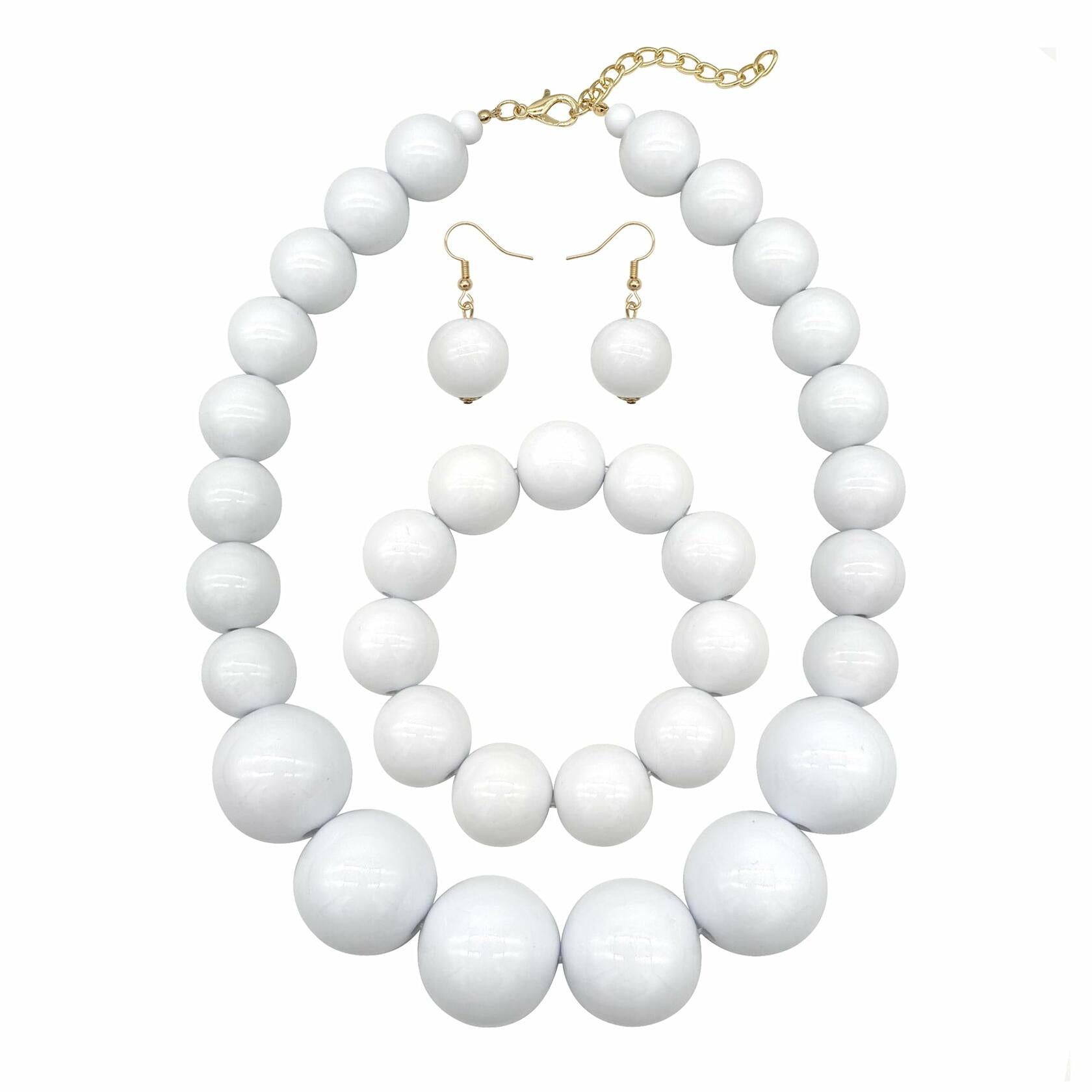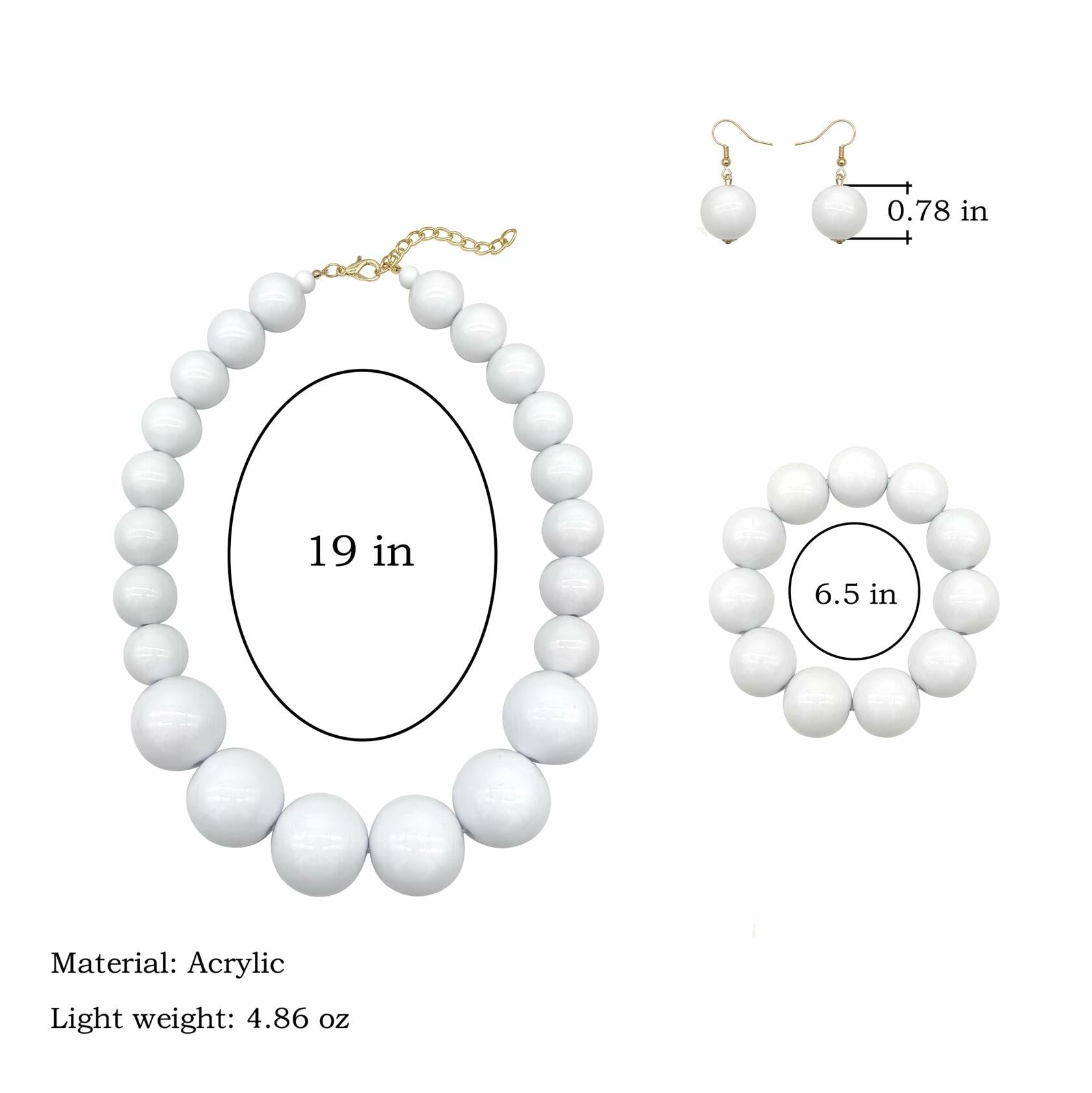 [Like New] JHWZAIY White Acrylic Beaded Necklace Chunky Statement 02 Set