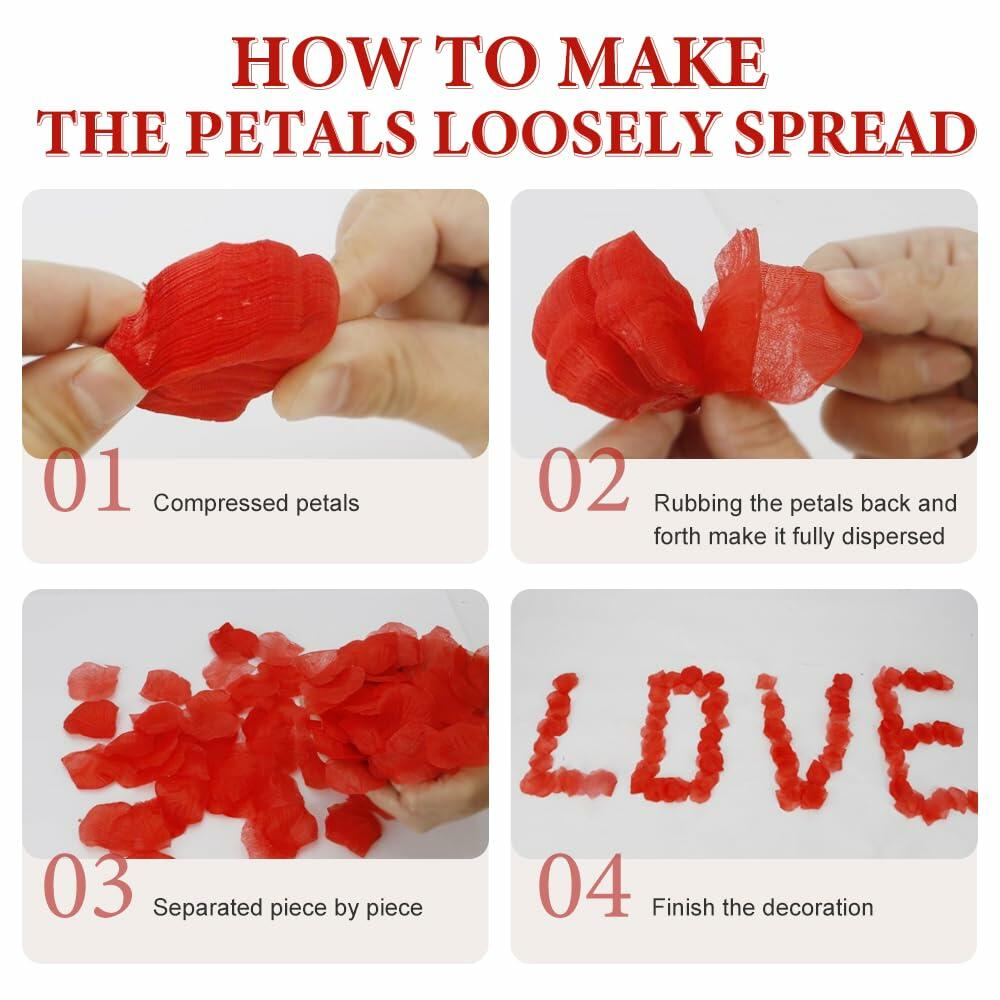 - 💖Rose Petals and Candles Set💖Rose petals for romantic night for her set, decorate with these rose petals and candle lights to create a romantic atmosphere and she will be very surprised and happy. These roses are suitable for confessions, proposals, anniversaries, and birthday wedding dates decorations. You can make a heart, I Love You or 520 shape according to her preference. Decorate rose petals in any area you like: carpet, stairs, bed or table.
