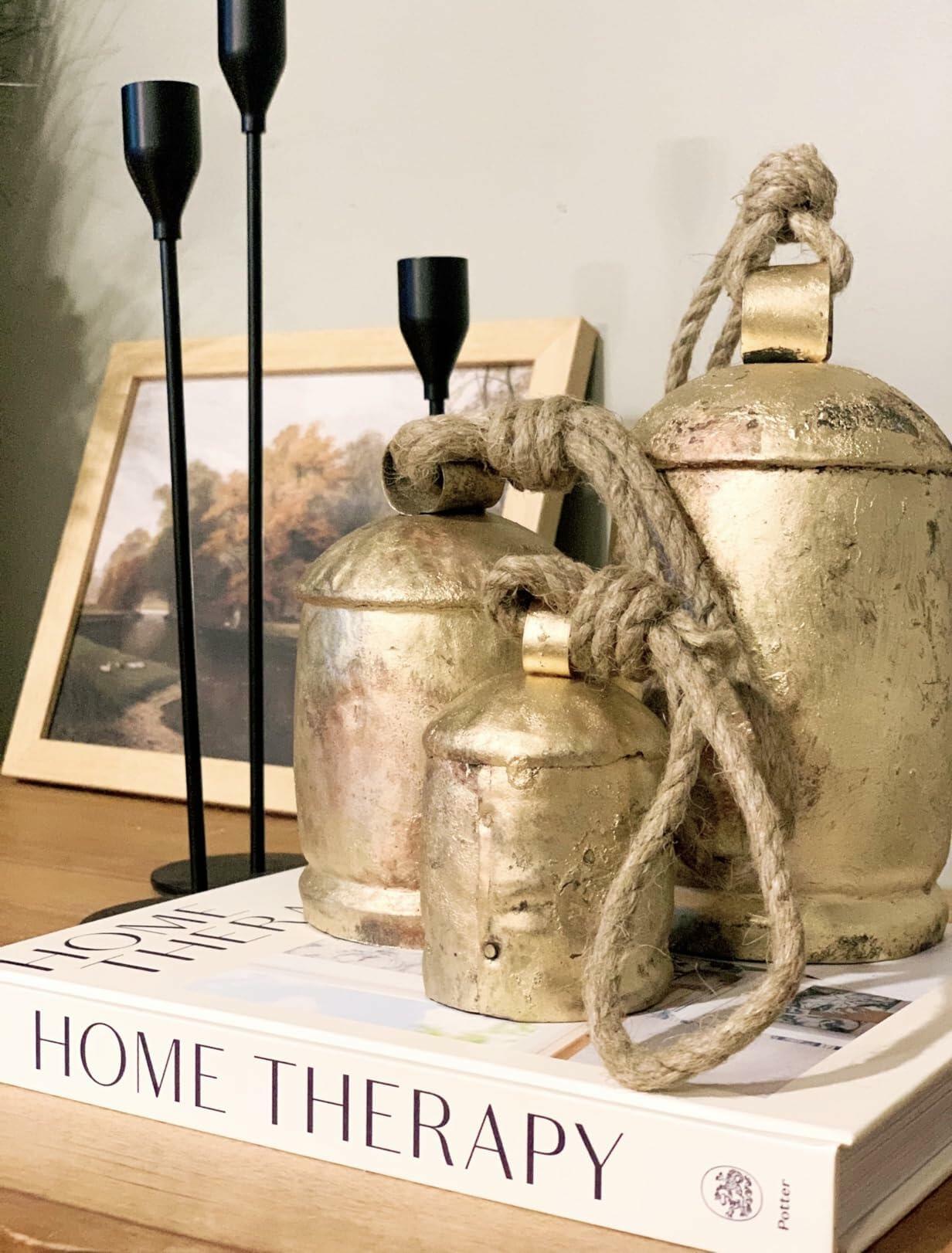 [Like New] NODYES Set of 3 Giant Rustic Harmony Bells 17in Gold Handmade Metal