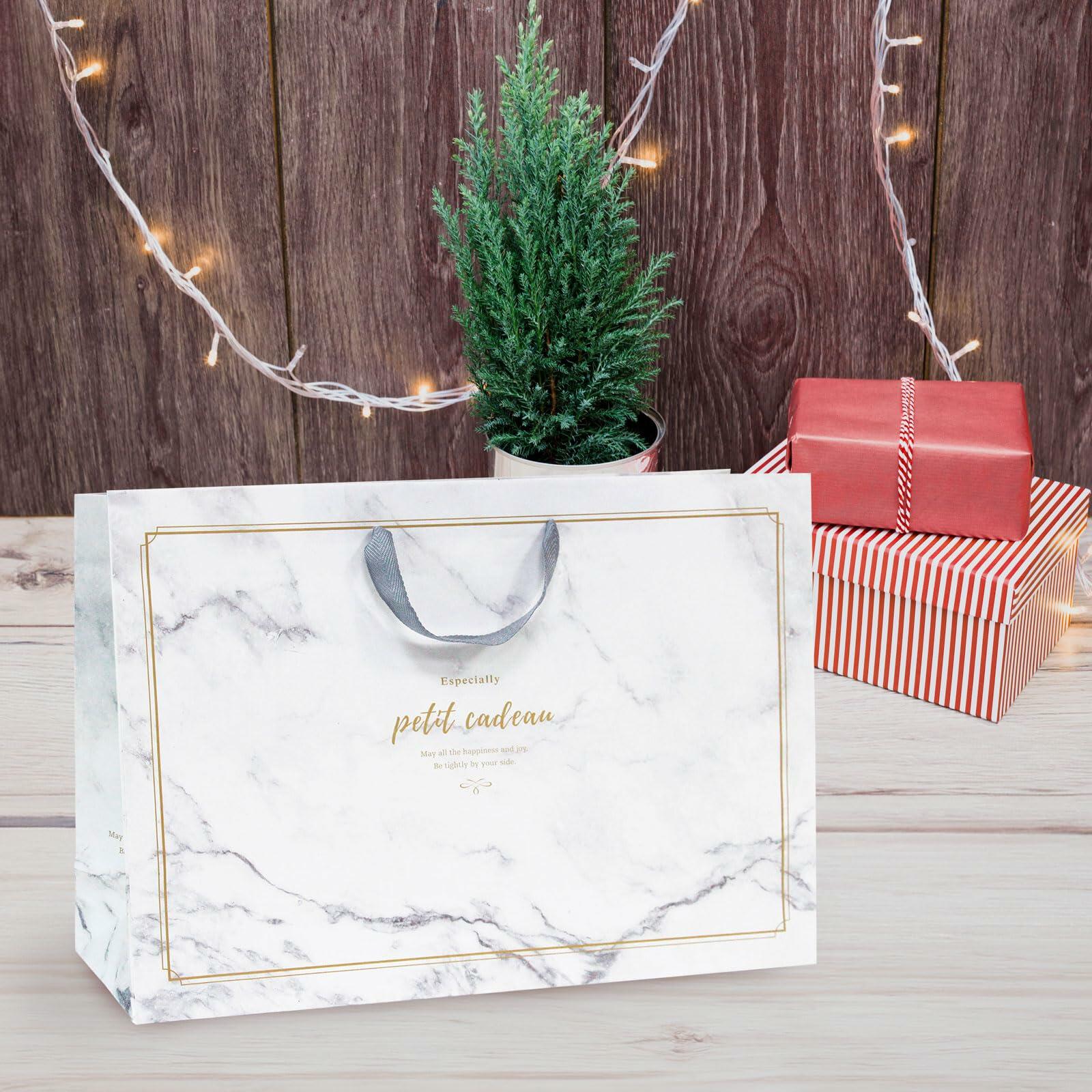 [Like New] Pomei 20 PCS Marble Paper Gift Bags Gray Handles 17.1x5.1x12.2in