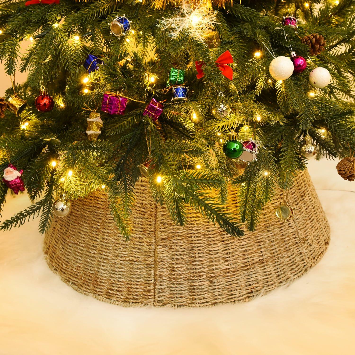 - 🎄 PERFECT ADDITION TO YOUR TREE - Seagrass tree skirt collar creates a rustic backdrop under your Christmas tree. It measures 20'' x 26'' x 9'', which can accommodate most live and artificial Christmas tree stands. Please measure yours to verify.