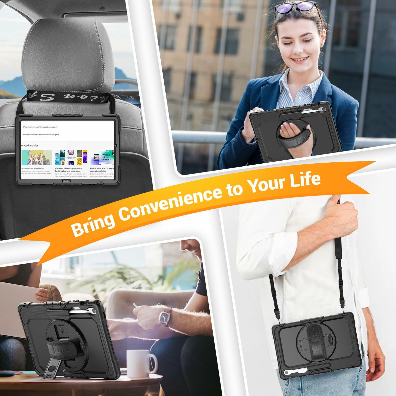 We have also included a strong, adjustable shoulder strap which can be connected onto the integrated looping holes of the case for Samsung Galaxy Tab S10 FE+ 5G 13.1 Inch.