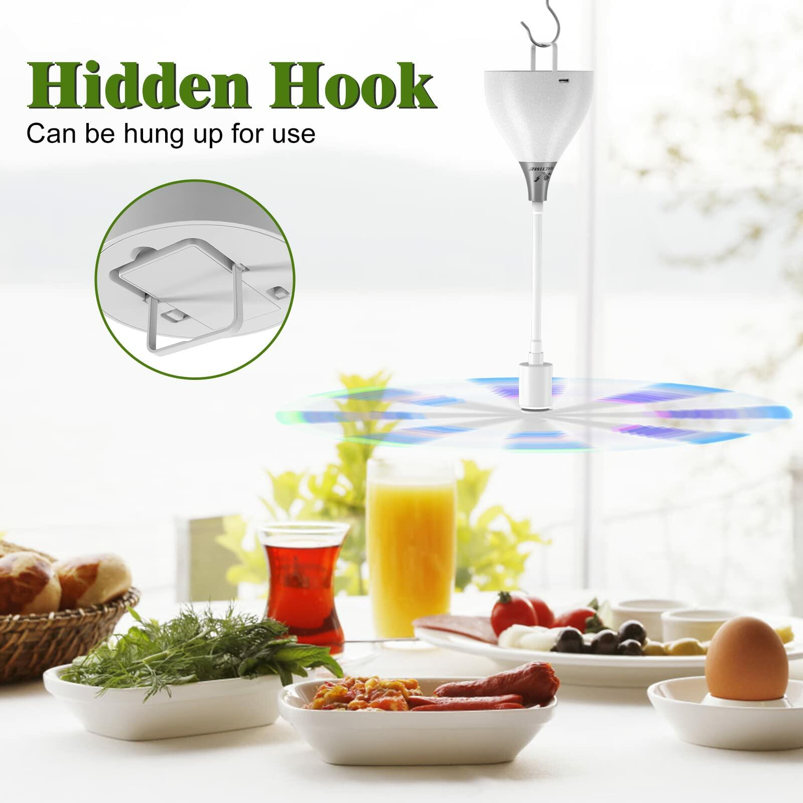 - 【Soft-stop Technology and Soundless】Considering the issue of safety and protection, the fly fans are equipped with soft-stop technology. When the fly repellent fan is turning, if an object touches the fan blades, it will stop spinning immediately. And after the object is removed, it turns again. Furthermore, the fan blades are soft. So it won't hurt objects or even our hands. What's more, the blades rotate quietly and do not make any noise. So you can get a quiet and fly-free environment.