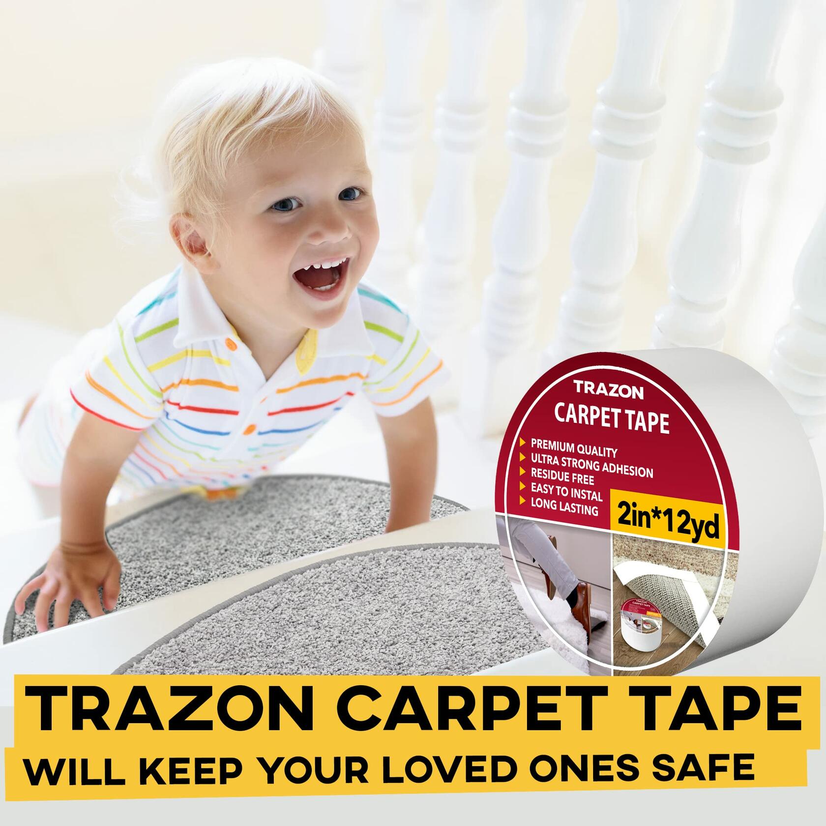 - Your Loved Ones are in Safety Now. Protect your toddlers, kids, senior family members from falling on the unstable surface. Our double sided tape for rugs reliably secures the mat to the surface so that it doesn’t move here and there. You and your dearest are now protected from bruises and those awkward situations when you slip and hurt your arm, back, leg, or head. This rug grip tape will ensure all your family members and guests can walk and play around in your place safely.