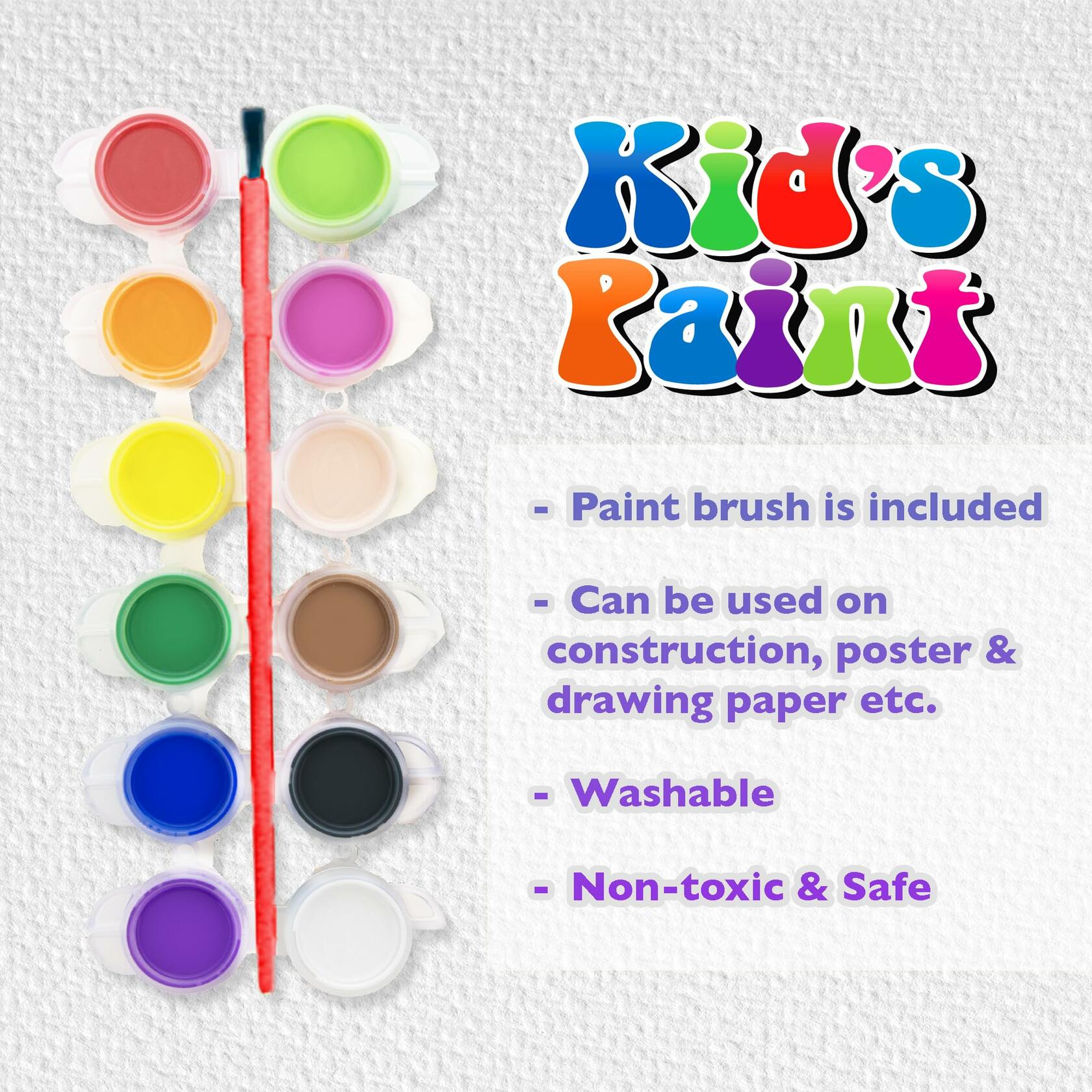 - NON-TOXIC AND SAFE. Non-toxic and safe paint set for kids toddlers, the raw material of this toddlers paint is nature ingredient, no stimulating and no harmful to skin.