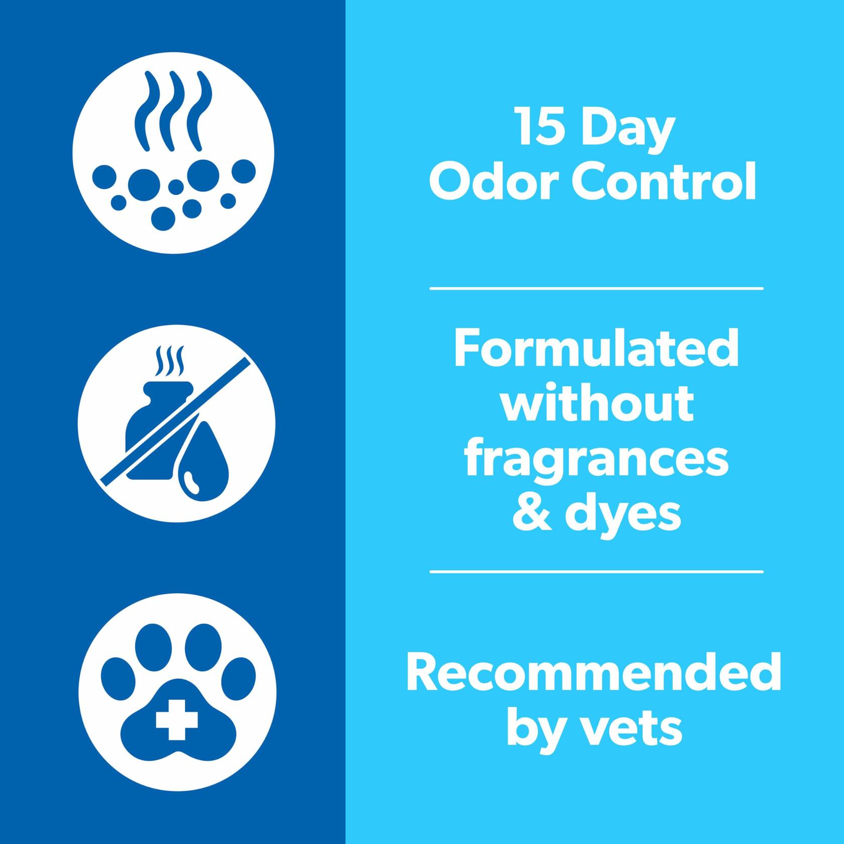 - NO ADDED DYES OR FRAGRANCES: Unscented clumping litter uses clay, carbon and minerals to stop odors on contact without the use of added fragrances or dyes
