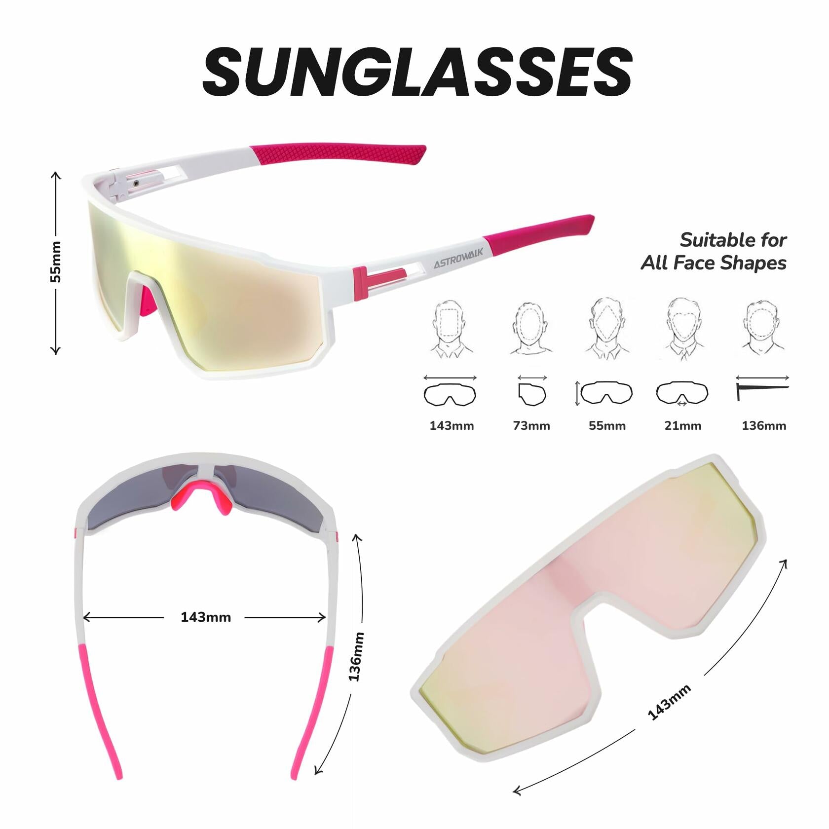 - FITS MORE FACE SHAPES: Adjustable nose pads allow you to freely modify height and angle. Flexible arms adjust to different face shapes, reducing pressure on nose for enhanced comfort and stability.