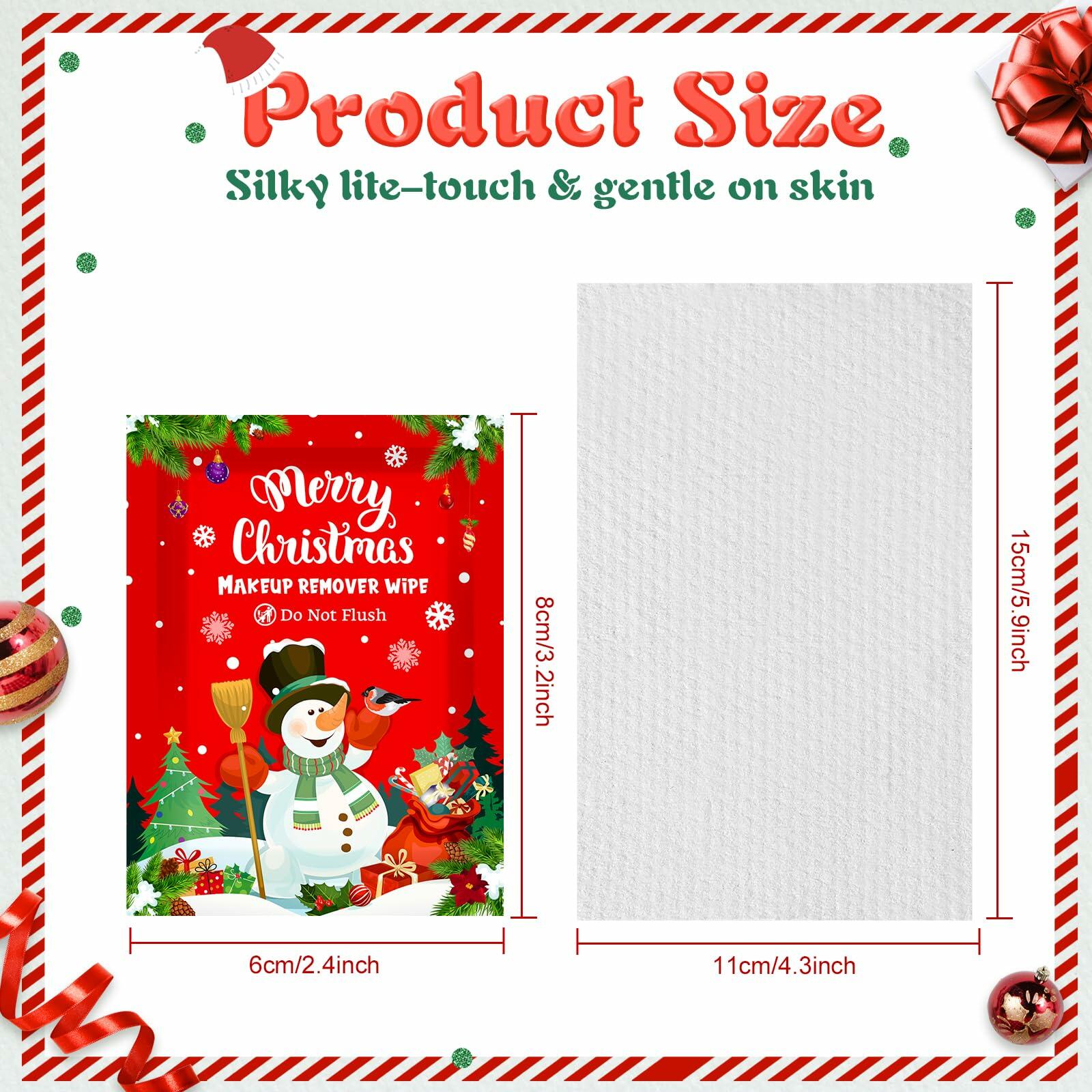 Features: Creative and practical gift idea: With the festive designs and practical function, these individual wrapped wipes can be ideal presents for your loved ones during Christmas. Whoever receives this thoughtful gift will appreciate your creative gesture. Convenience to use: Our individually wrapped make up remover wipes offer you the convenience. They are portable and hygienic, nice for travel or a quick cleanup. Plus, their single portable packaging reduces the worry of wipes drying out. Specifications: Material: non woven fabricColor: multicolorOpening size: approx. 4.3 x 5.9 inches/ 11 x 15 cmPackage includes: 100 x Christmas individual makeup remover wipesNotes: Manual measurement, please allow slight errors on size. The color may exist a slight difference due to different screen displays. Test whether there is any allergy on a small part of your skin before use. Please stop applying if there is any discomfort.FEATURES
