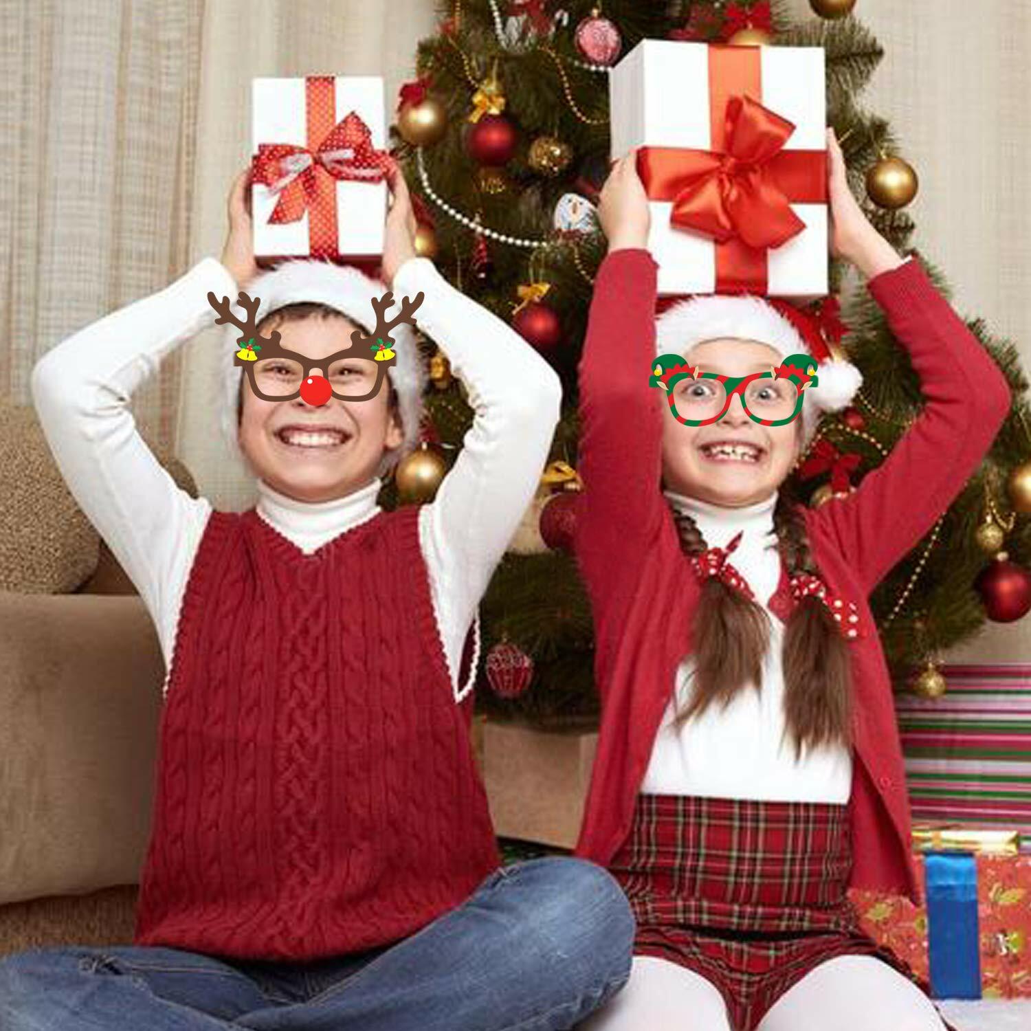- Buy with Confidence: Christmas glasses props set are great for Christmas party fancy dress accessories, easy to wear & fun Christmas glasses for children or adults. Novelty Paper Christmas Glasses will definitely add more fun to your Christmas party! Any problem just email us about the Christmas glasses! More Christmas decoration Christmas party supplies favors gift please visit Howaf storefront.