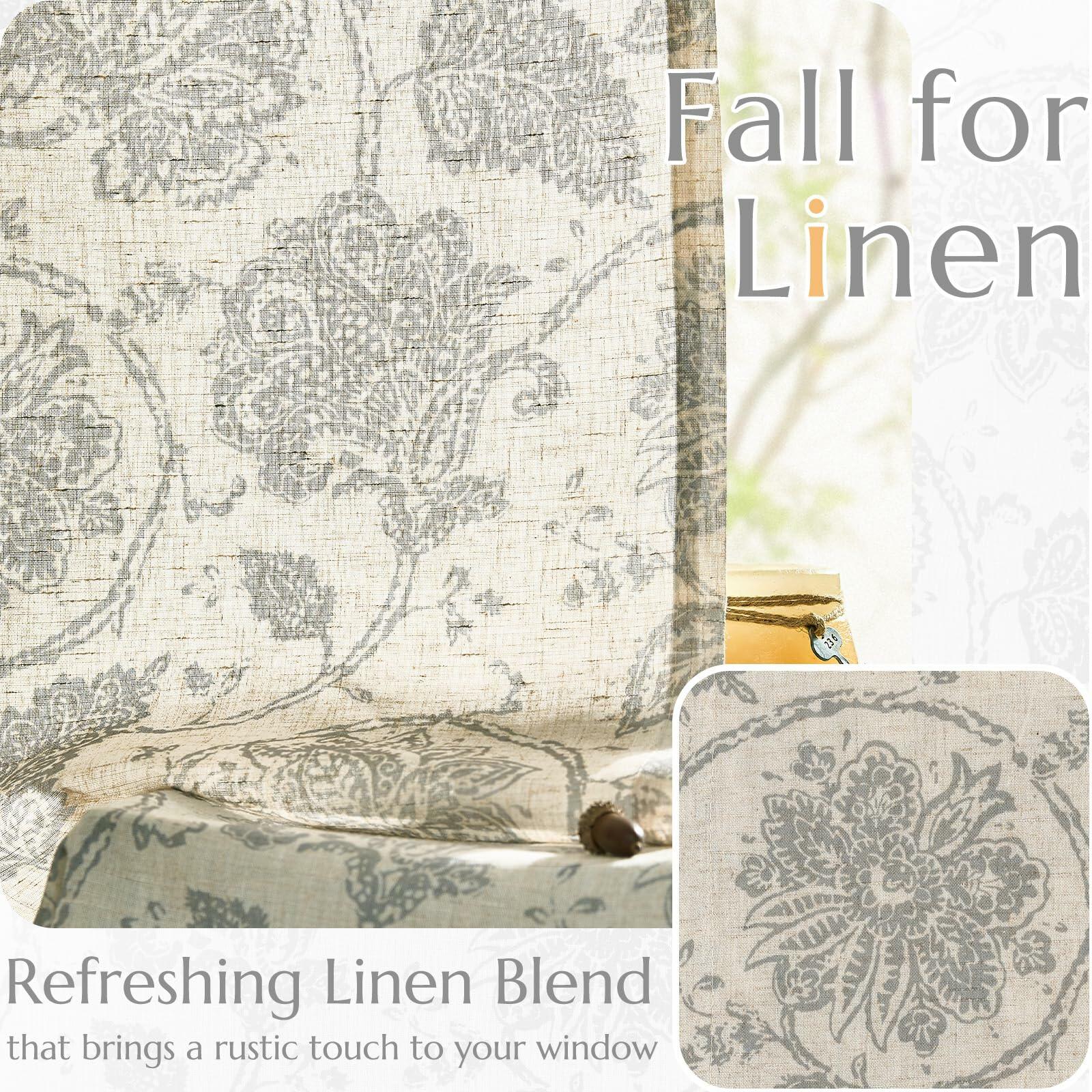 [Like_new] jinchan Linen Curtains Gray Floral Paisley 63in Length 2 Panels