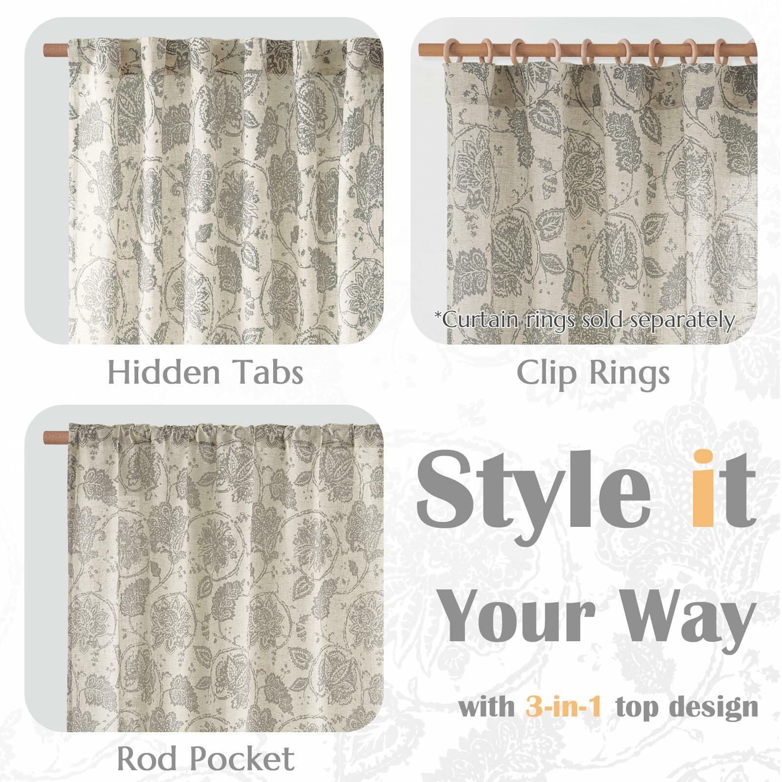 CKNY HOME FASHION paisley scroll print linen curtain is a great way to dress up your windows! WELL MADE: All sizes curtains fit easily with standard curtain rods. 5 different colors to match your home decoration. Durable linen & poly blend textured fabric. PERFOMANCE: Retro design combined with the benefits of reducing outdoor light and providing privacy. Enjoy your favorite show with no glare on your screen. Floral scroll print design with its visually clean lines gives the curtain a rustic and vintage look. Suitable for kitchen, office, bedroom, living room and more, for a privacy protection. EASY CARE: Curtain is made to last. Machine washable in cold water, gentle cycle, tumble dry. Cool iron if needed. ABOUT US Find CKNY HOME FASHION, various styles of the valances, the blackout curtains, the sheer curtains and the tier curtains for more choices.FEATURES