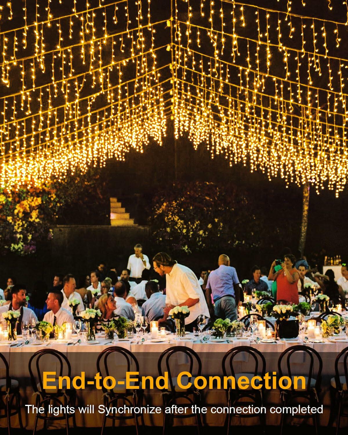 - 8 Lighting Modes & End-to-End Connectable: Our hanging Christmas lights offer 8 unique lighting modes—from twinkling flashes to a steady glow, each setting is designed to create a different spooky ambiance. The best part? You can connect up to 3 strands end-to-end, whether you're decorating your entire house or a large outdoor space, all connected strands will synchronize perfectly, ensuring a seamless display that covers larger areas