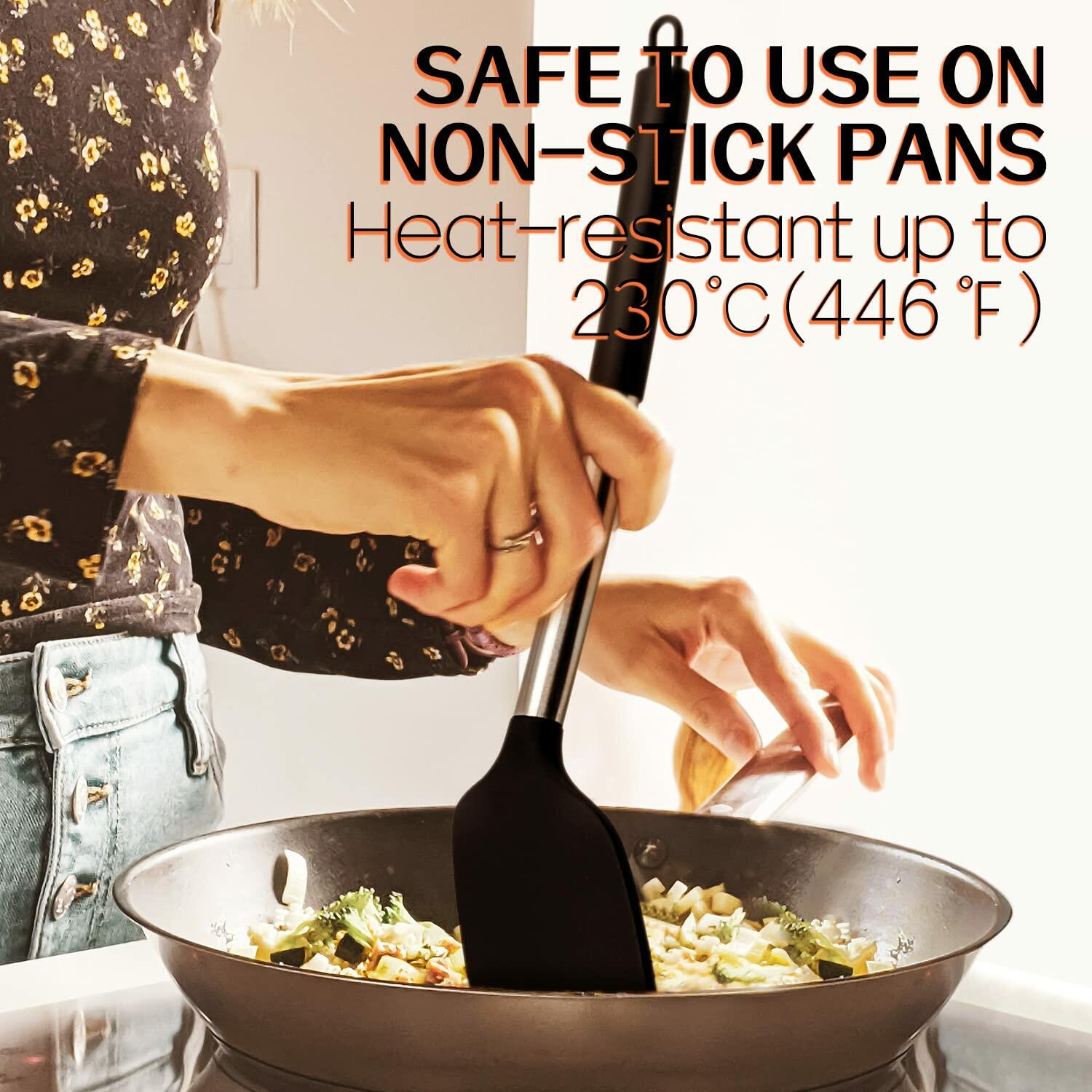 - ✅ SOFT SILICONE & HEAT RESISTANT - The soft silicone material can protect your cookware and the non-stick heads makes it easy to clean up. The cooking utensils set can with stand temperatures up to 446°F, Even if they are used in the high temperature environment of frying, you don't have to worry that it will melt when you accidentally leave it in the pot for a while.