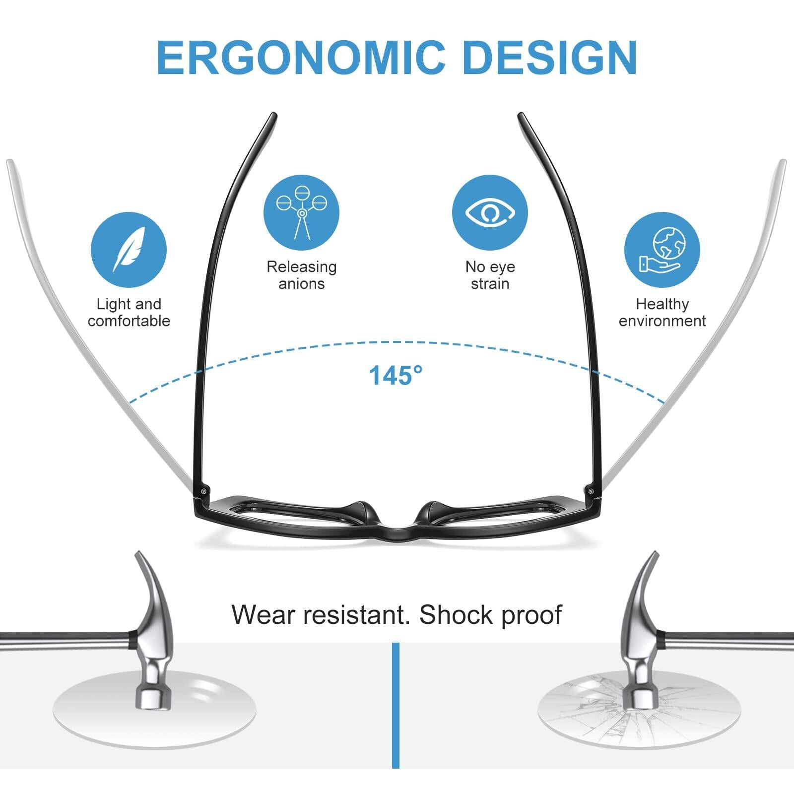 - 【 High Quality Materials 】– Made of Optical Quality Lenses and Polycarbonate frame. Lightweight, Durable and Easy to Clean. Ergonomic one piece nose pad with Anti-slip design, It can to minimize pressure on the ears and bridge of the nose. And Eco-friendly materials without the annoyance of allergic reaction for human Skin, the anti-allergic flexible material makes you really enjoyable in any conditions