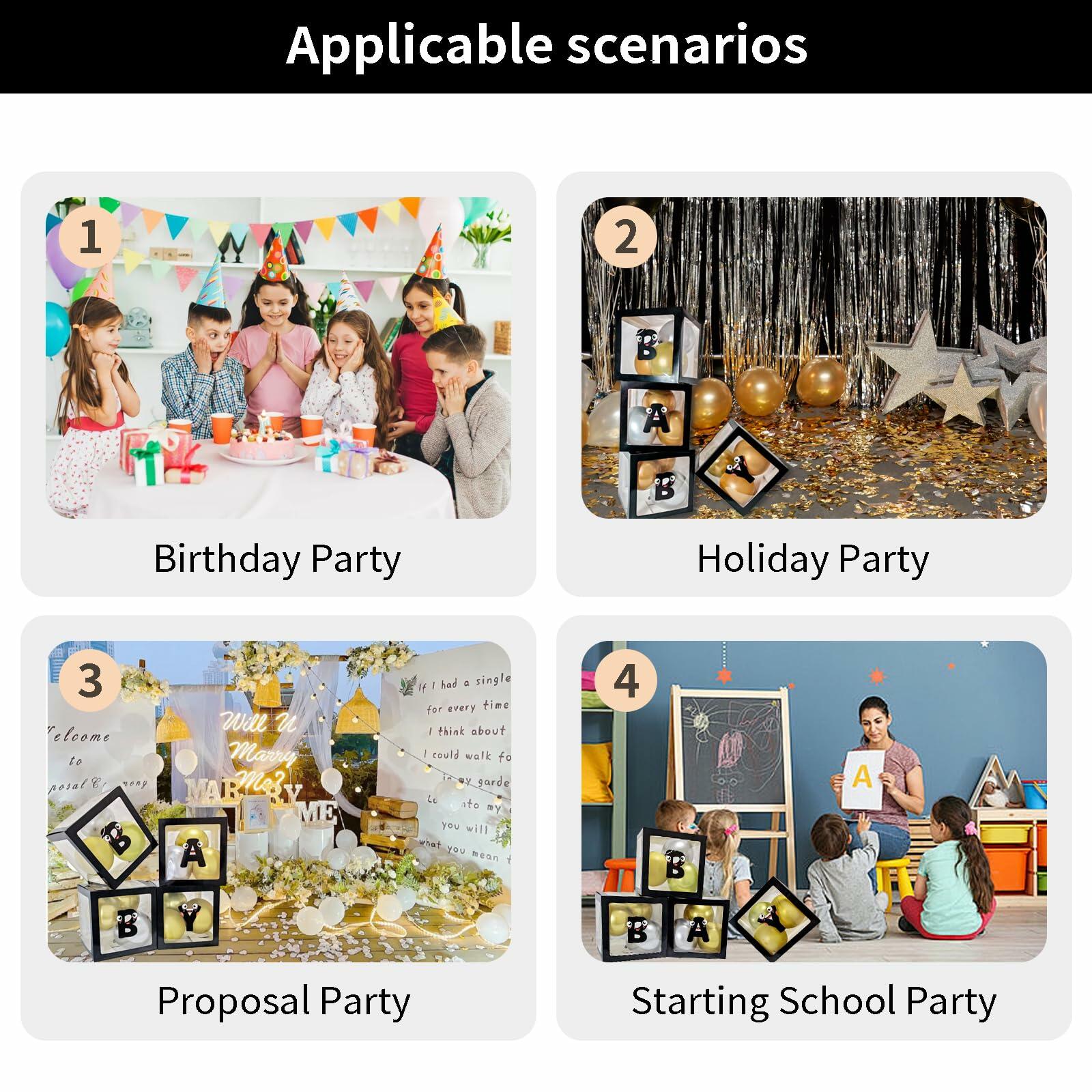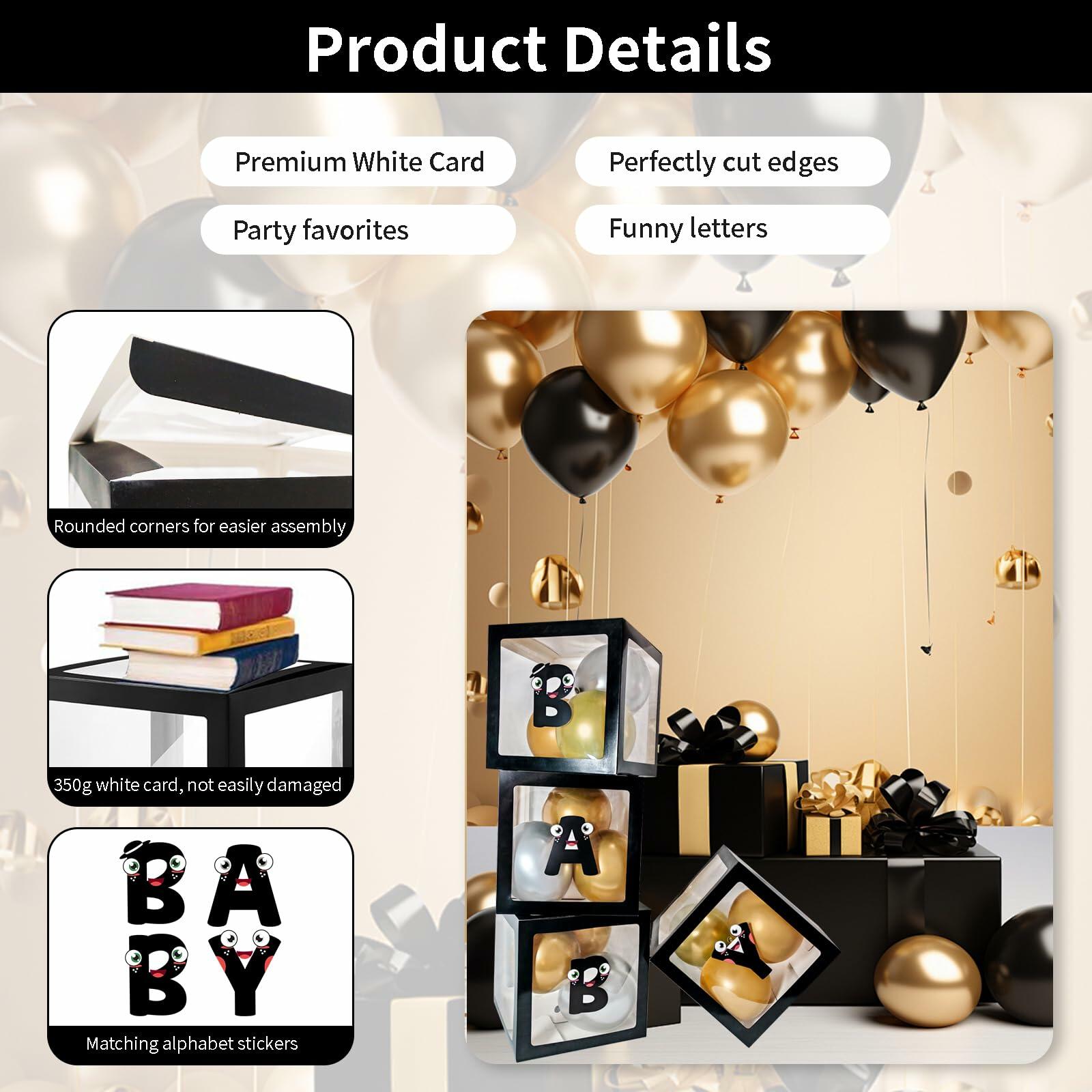 [Like New] Onteftshop Baby Boxes Letters Clear Black 4pcs Party Decorations