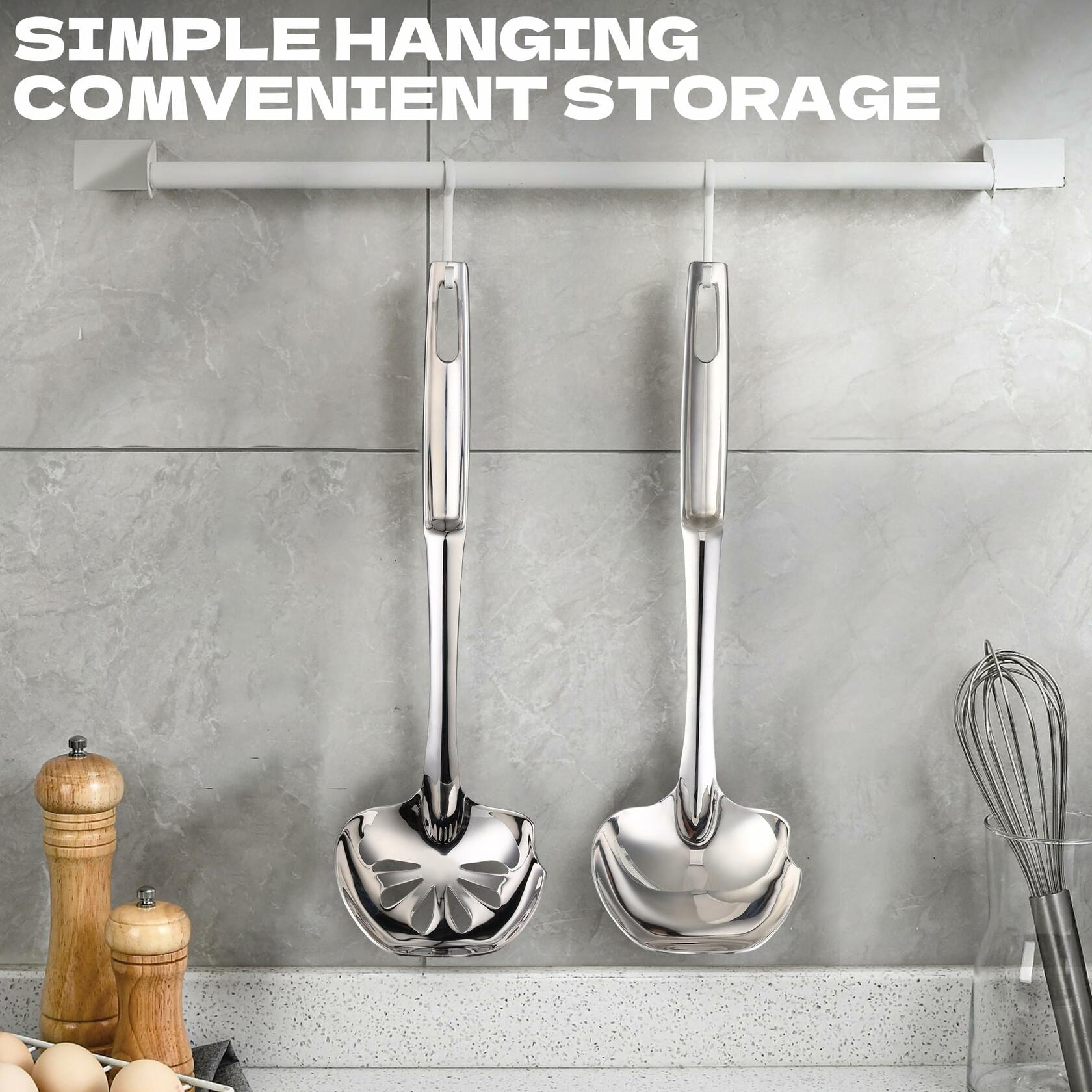 - 5A Mirror Polishing: The fine polishing process makes the surface of the slotted spoons for cooking smoother and easy to clean, saving you more time.