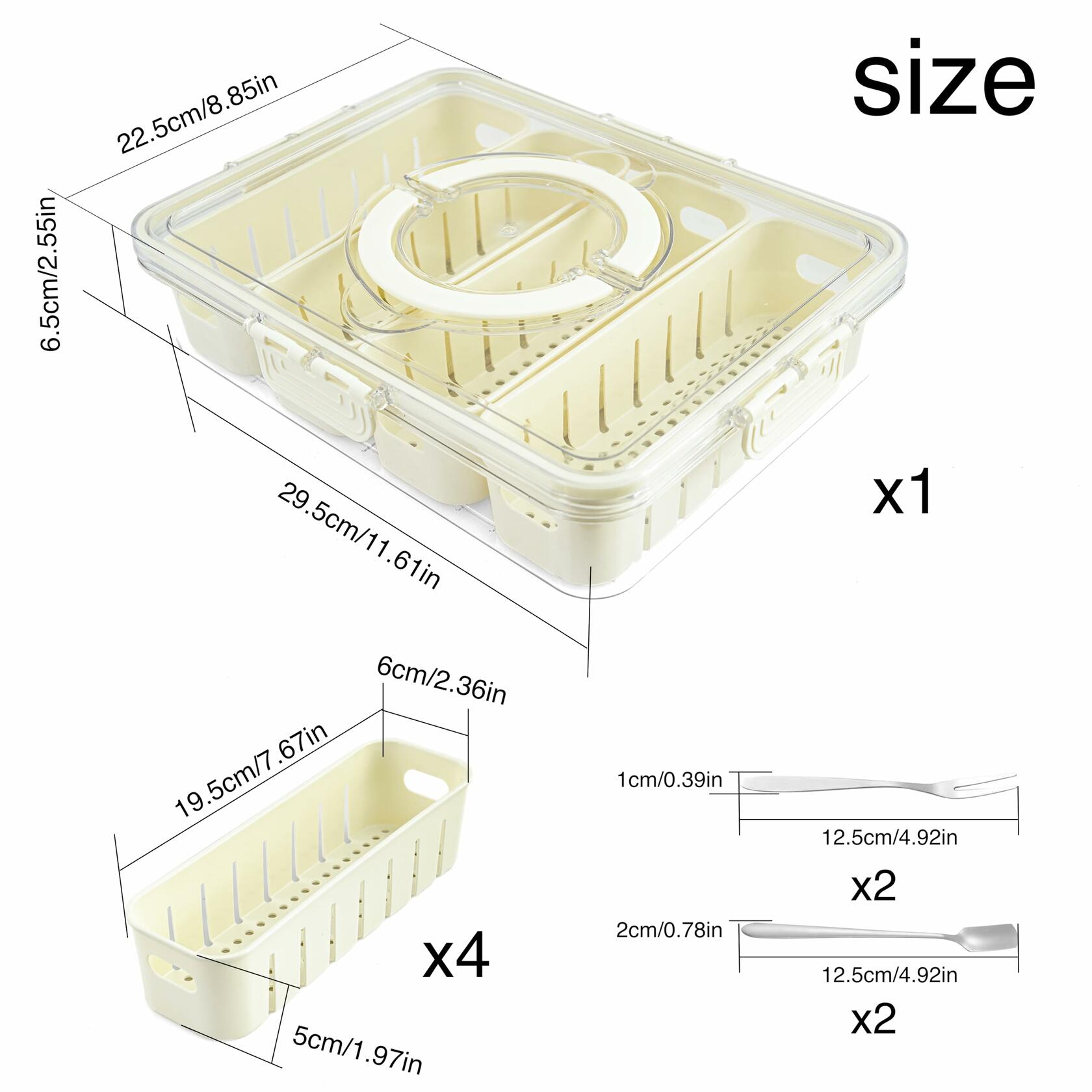 Introducing the NAVARET Divided Serving Tray with Lid and Handle, an innovative solution for all your food storage and serving needs.This 4 compartment portable Snackle Box Container is not just another lunch box, its a game-changer for anyone looking to keep their snacks organized, fresh, and ready-to-go at a moments notice. Crafted from high-quality materials, this versatile container is perfect for everything from beach essentials to apartment living, making it an indispensable addition to your kitchen arsenal. Say goodbye to the clutter of paper plates and mismatched food containers with lids.
