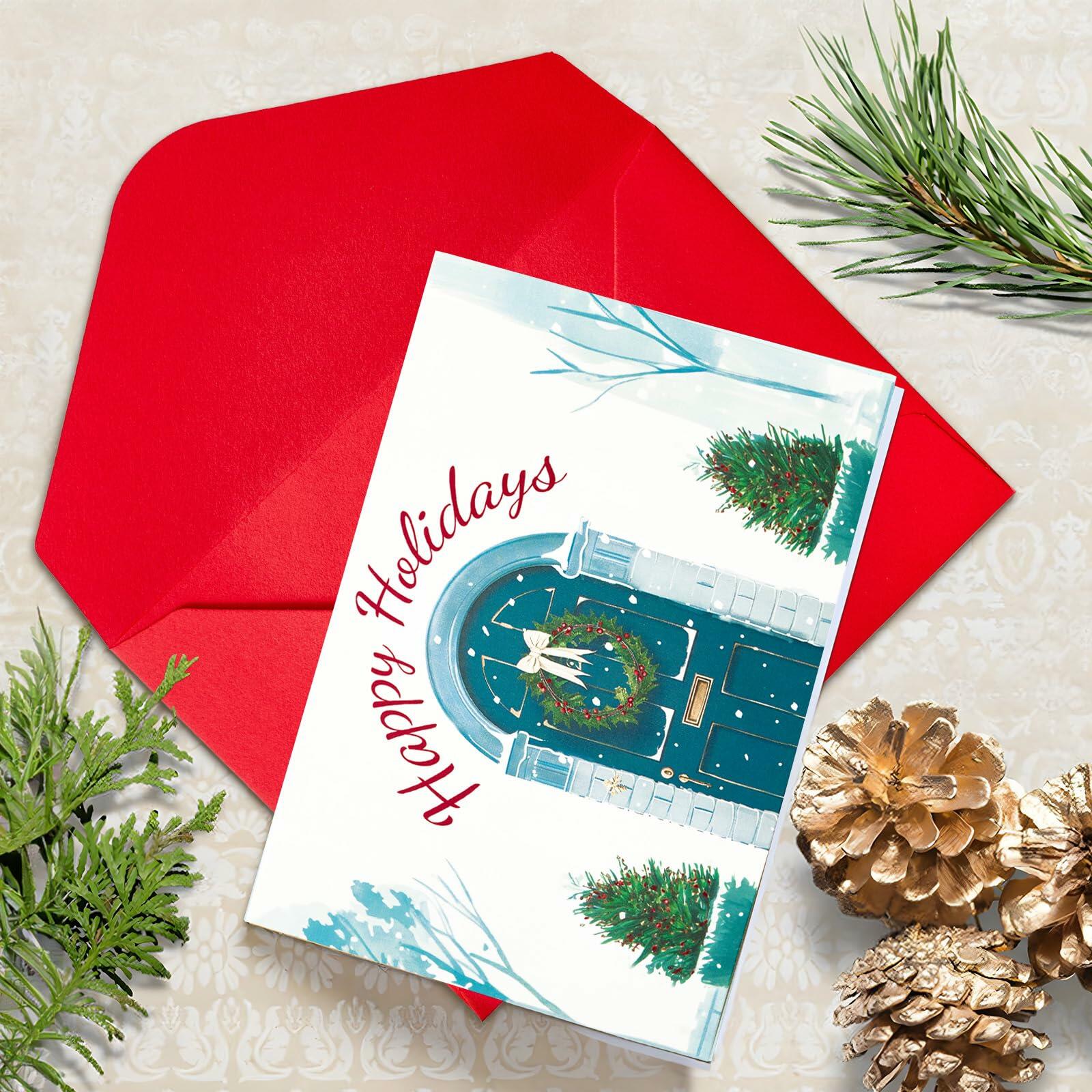 - PREMIUM QUALITY AND DURABILITY: Printed on sturdy 300gsm cardstock, these happy holidays cards with envelopes are designed to impress. The 120gsm envelopes provide a luxurious feel and durability, ensuring your greetings arrive in perfect condition.