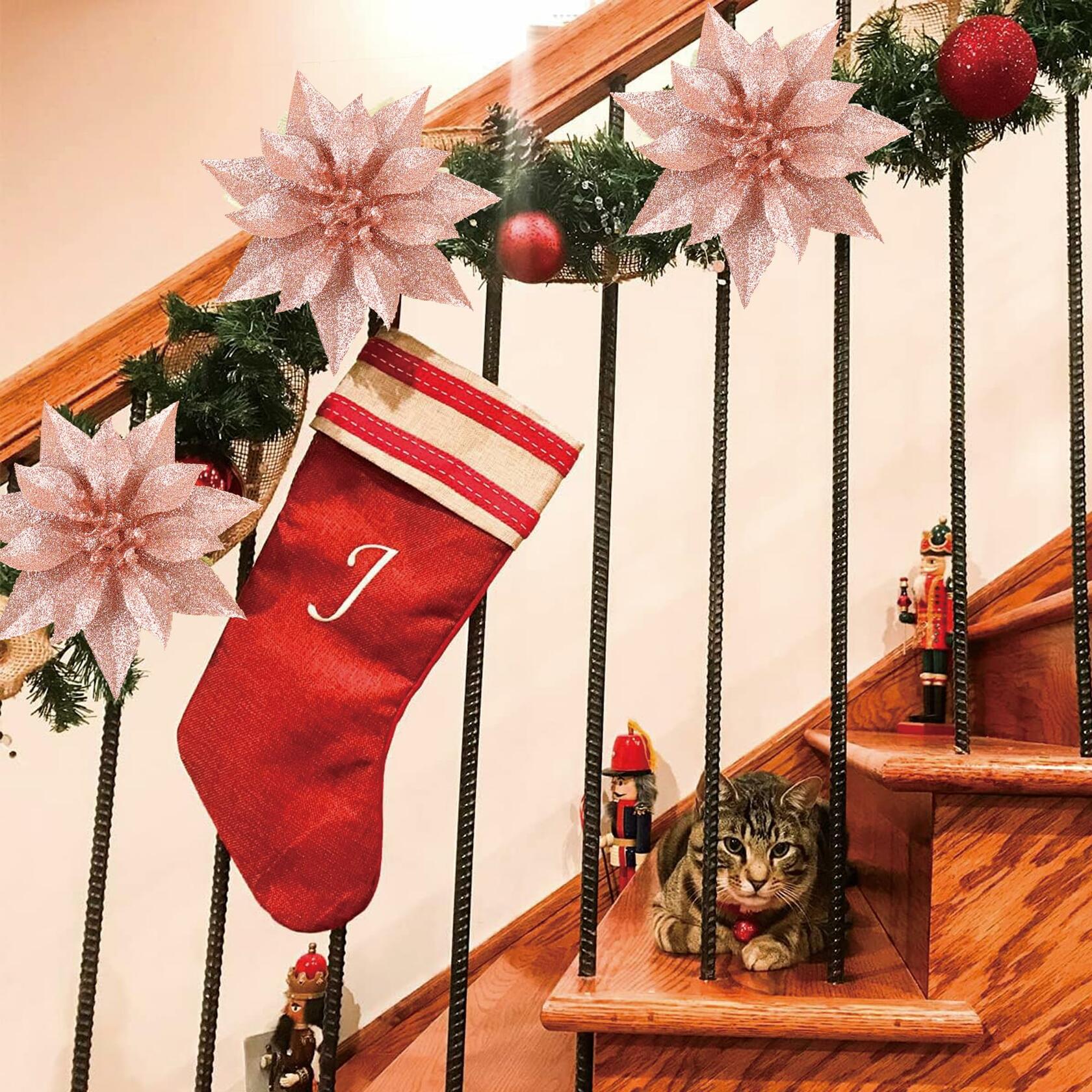 - EASY DECORATION:These champagne Christmas flowers for tree comes with clips and stems that allow you to attach them to your Christmas tree effortlessly.Just insert the clip or stem tip into the root of the champagne poinsettia flowers then apply them on anywhere you like.Sparkling in the winter,these champagne christmas ornaments will add an elegant& warm touch to your holiday decor and enhance the festive atmosphere.