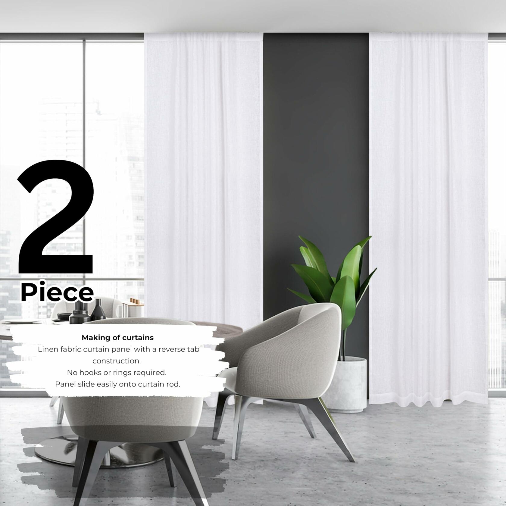 - ✔️Making of curtains: Linen fabric curtain panel with a reverse tab construction. No hooks or rings required. Panel slide easily onto curtain rod.